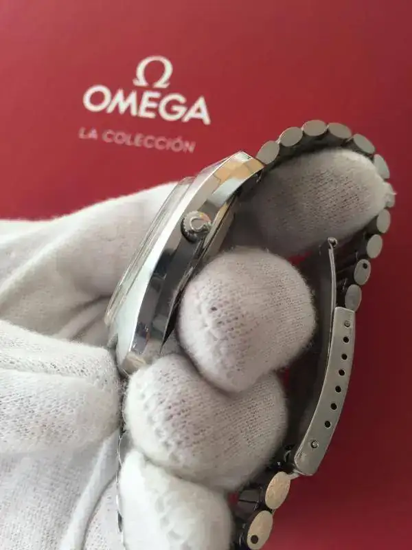 Pocos fueron en la época los que adquirieron un fabuloso movimiento de diapasón como este omega que es una delicia y que funciona a la perfección, decir que dispone del calibre 1260 que fue el sucesor del 1250 montado solo con numerario, este disponde de paso de fecha y numeración rápida, la condición del reloj es fantástica, esfera en gris plata, saetas y numerales originales en acero, corona firmada con el logo de omega como nueva, caja y armis original del modelo, ambos han sido matizados y estan en una condición magnífica, el plexi es el original del reloj con el logo de omega en el centro, esta si marcas ni rayas y en perfecto estado solo con alguna marca de la dilatación en las juntas. Vamos que el reloj esta tal cual salió en su día cuando fue comprado.