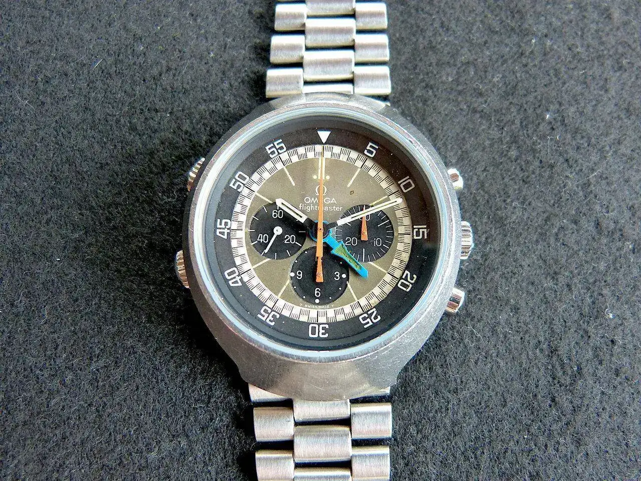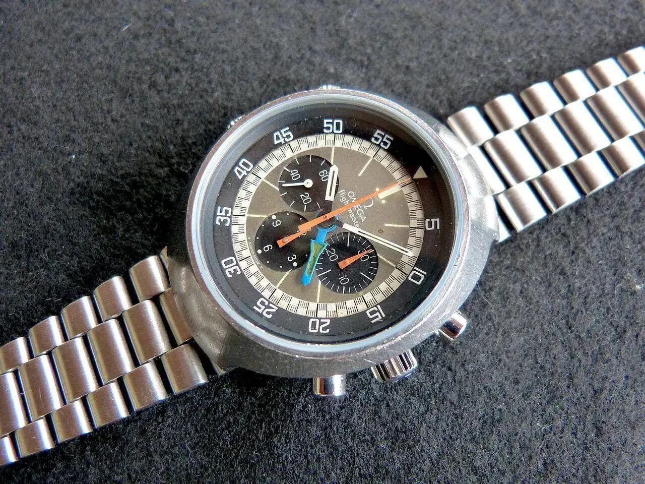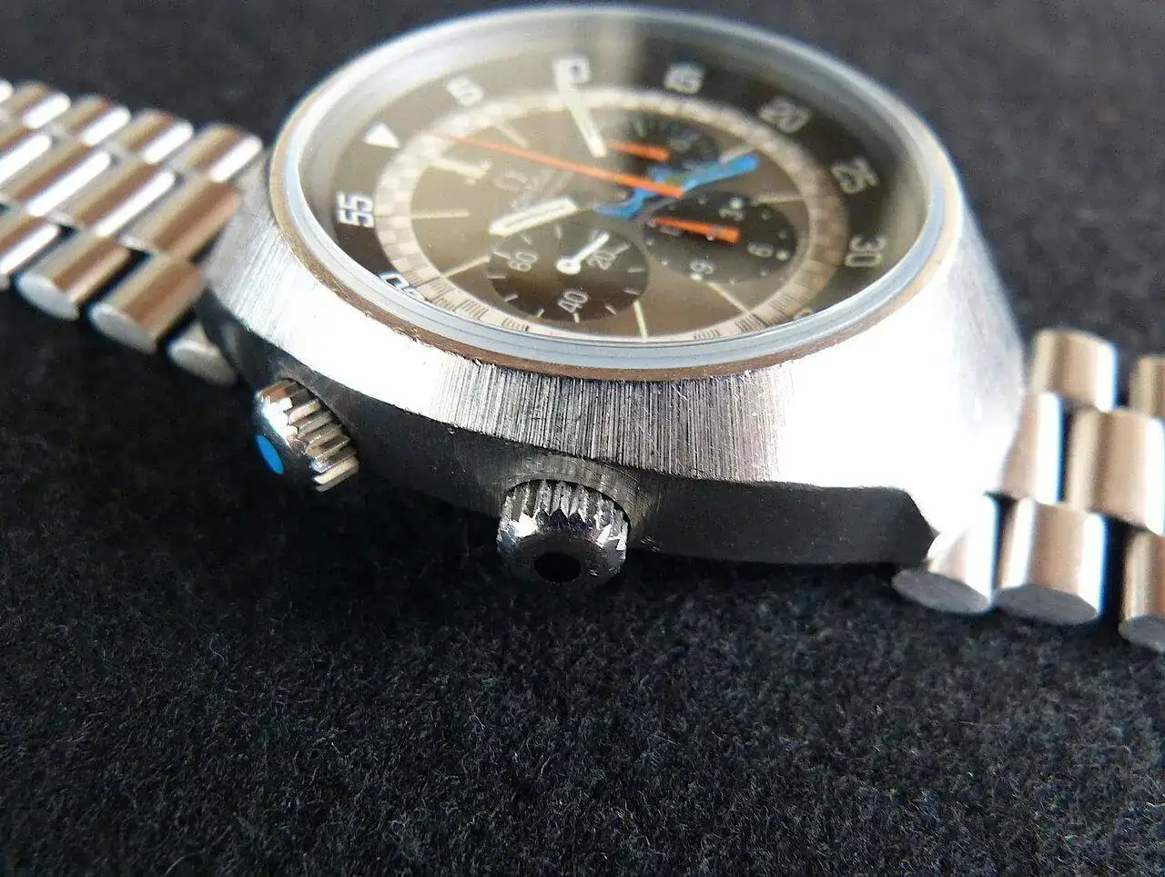 Reloj en muy buen estado general. El calibre está revisado por taller certificado Omega y dispone de 24 meses de garantía. La caja está sin tocar y sin pulir manteniendo casi integro el acabado original "rayos de sol". Esfera de origen ligeramente tropicalizada y degradada hacía el gris, bisel interior giratorio en muy buen estado al igual que las agujas. Pulsadores y coronas originales con su laca de colores correspondiente (la corona principal es nueva a estrenar repuesto original Omega al igual que el cristal). Brazalete también de origen en buen estado y prácticamente sin holgura.