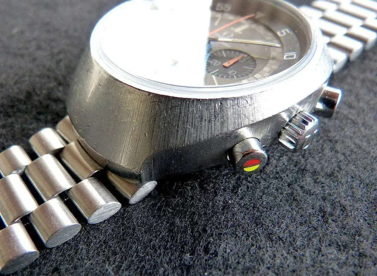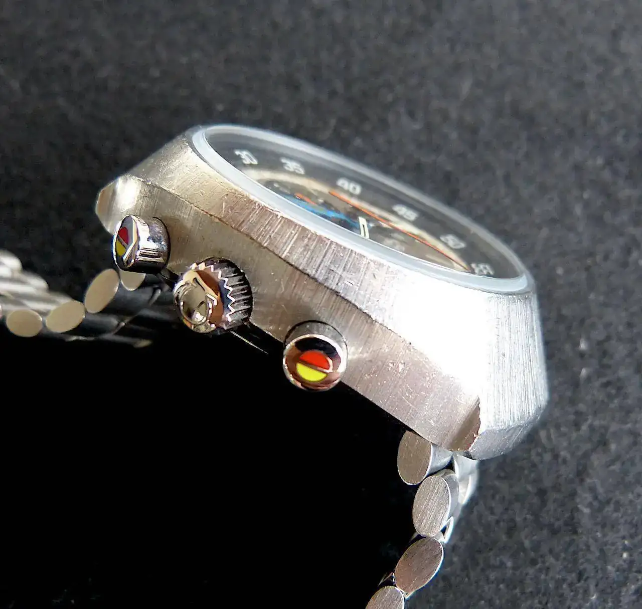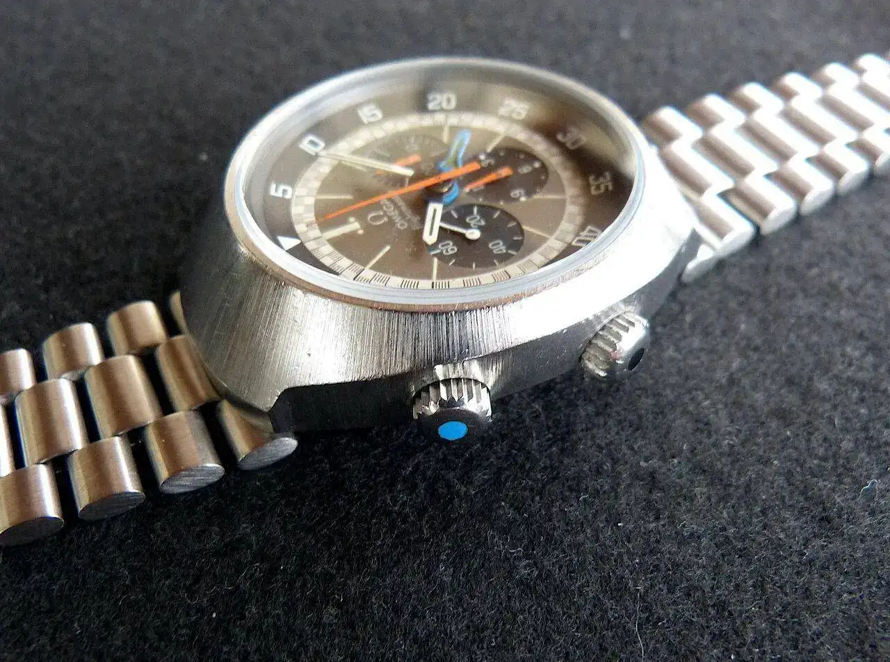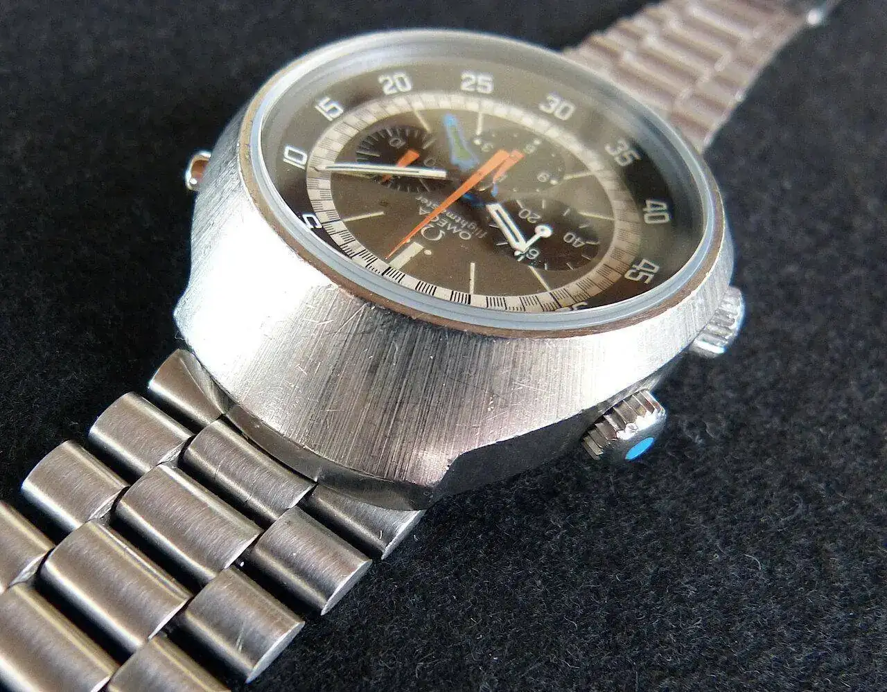 Reloj en muy buen estado general. El calibre está revisado por taller certificado Omega y dispone de 24 meses de garantía. La caja está sin tocar y sin pulir manteniendo casi integro el acabado original "rayos de sol". Esfera de origen ligeramente tropicalizada y degradada hacía el gris, bisel interior giratorio en muy buen estado al igual que las agujas. Pulsadores y coronas originales con su laca de colores correspondiente (la corona principal es nueva a estrenar repuesto original Omega al igual que el cristal). Brazalete también de origen en buen estado y prácticamente sin holgura.
