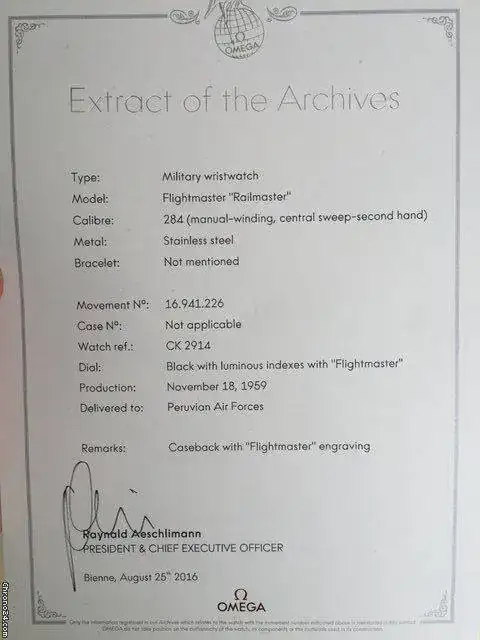 Pues bien, resumiendo mucho, entre 1958 y 1964 a Omega le requirieron la realización de unas series muy cortas de relojes de dotación, la serie peruana y la paquistaní. En concreto, de la peruana, se estima una tirada de sólo 200 relojes en todo el mundo, y su concepción fue una adaptación a las necesidades que le plantearon a la marca desde el ámbito militar. Por un lado debía ser antimagnético (supongo que por posibles imprecisiones que pudieran provocar los instrumentos y baterías de los aviones de la época), y también debía ser un reloj con capacidad de buceo, ya que en una situación de amerizaje o de trabajo en aviones anfibios exigía el contacto con el agua. Es decir, debía ser un reloj resistente a todas las eventualidades que un piloto militar podría sufrir.