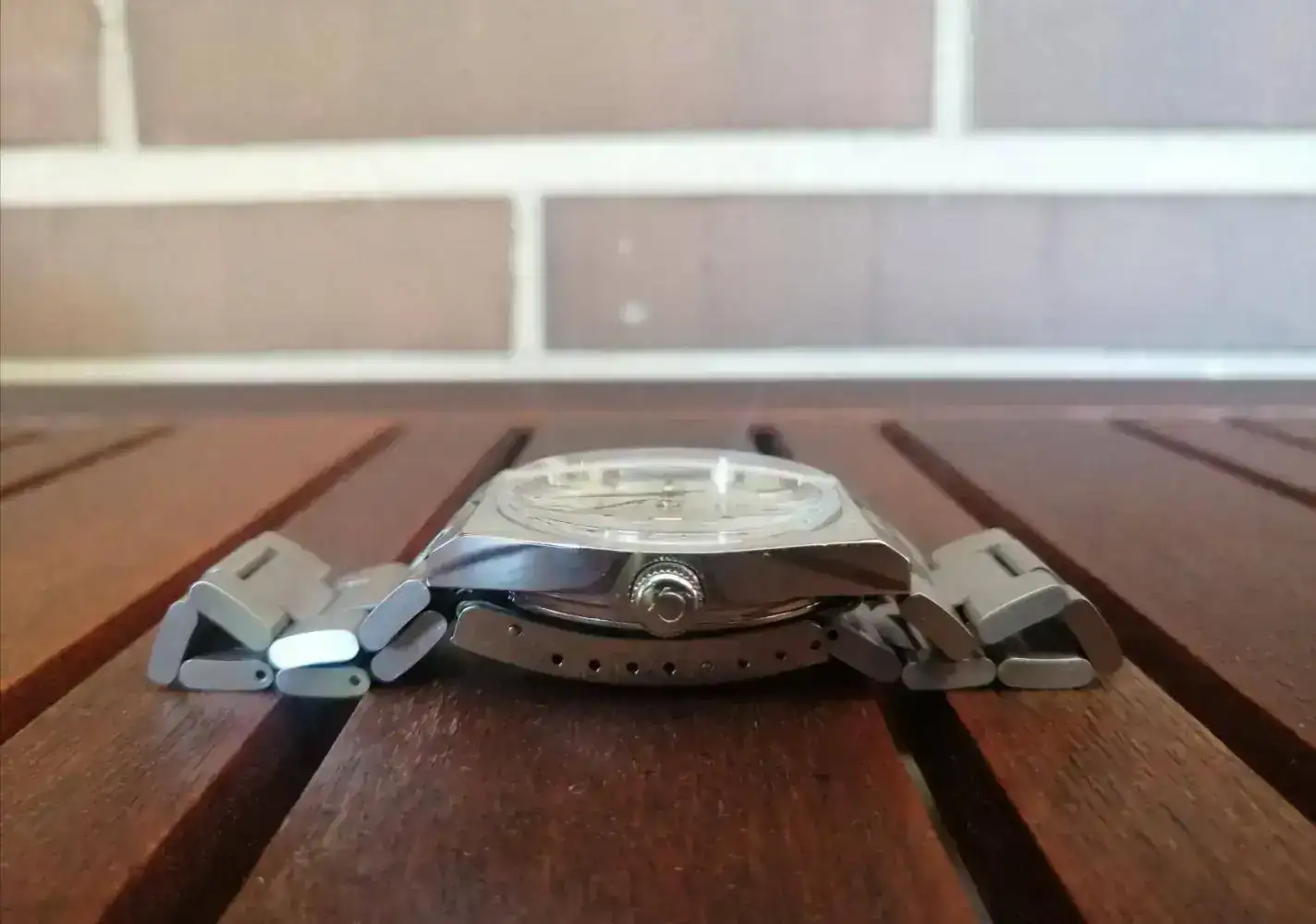 El dial se encuentra en gran estado, recordemos que es un reloj con 50 años sus espaldas, algo de suciedad o deterioro aunque leve en la parte externa del dial, a lo largo del primer cuarto de hora. Un par de pequeñas manchas que hay que ver a trasluz rondando encima de la grafía “géneve”. Son cosas a las que apenas doy importancia, teniendo en cuenta el gran estado de conservación de un vintage con 50 años, pero prefiero mencionar y que no haya sorpresas. Intentaré mostrarlo con fotos de detalle acentuando la saturación del color para que pueda apreciarse, pues de otra forma no se aprecia en las fotos.