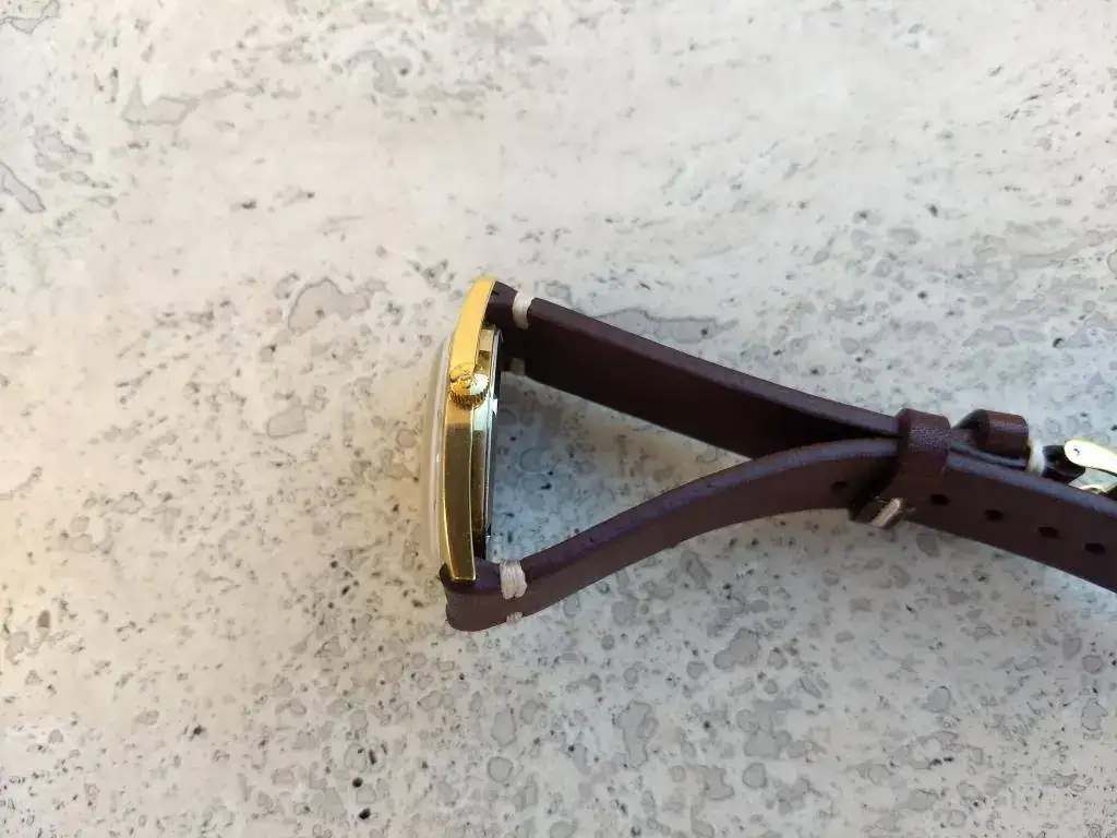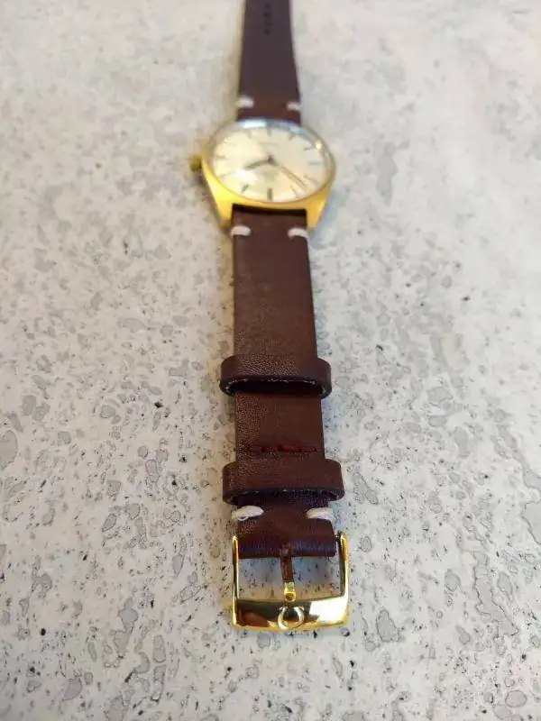Se entrega con correa artesanal de piel hecha en Suecia a estrenar, con pasadores "cambio fácil", y hebilla nueva firmada Omega.