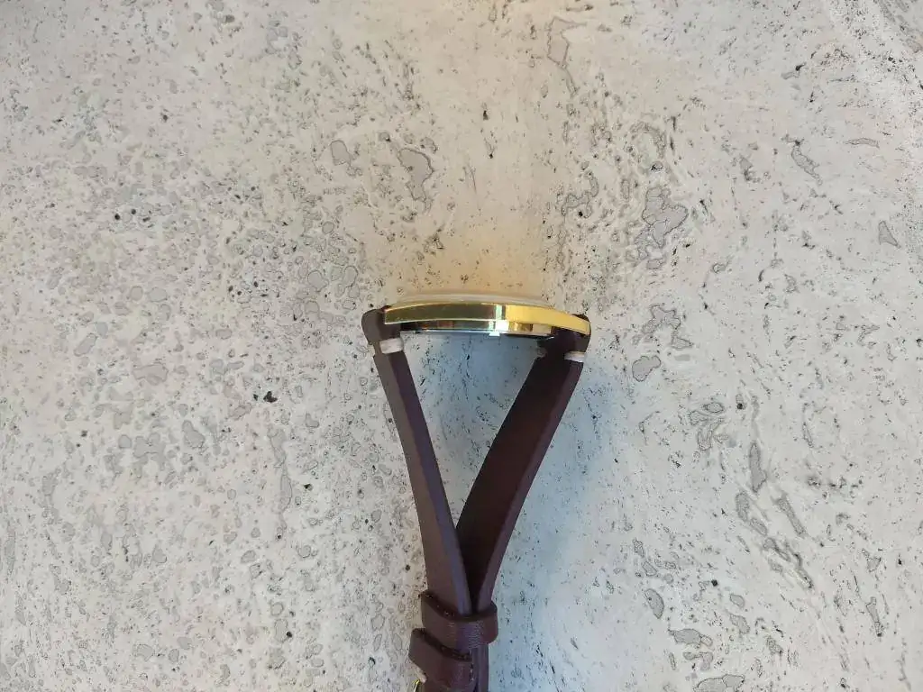 Su estado estético es excepcional. La caja está visualmente nueva, sin desgaste ninguno y con las aristas intactas, al igual que la corona firmada. La esfera "soleil" también en excelente estado. Plexy original firmado sin marcas visibles.