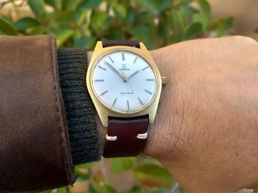 Le toca salir a este precioso OMEGA modelo GENEVE vintage de 1968, equipado con el calibre 601 de carga manual, como es sabido de los mejores calibres de la gloriosa Historia de Omega. Al reloj se le hizo un servicio completo recientemente (desmontaje, limpieza, engrase, afinación) y está preparado para muchos años de funcionamiento.