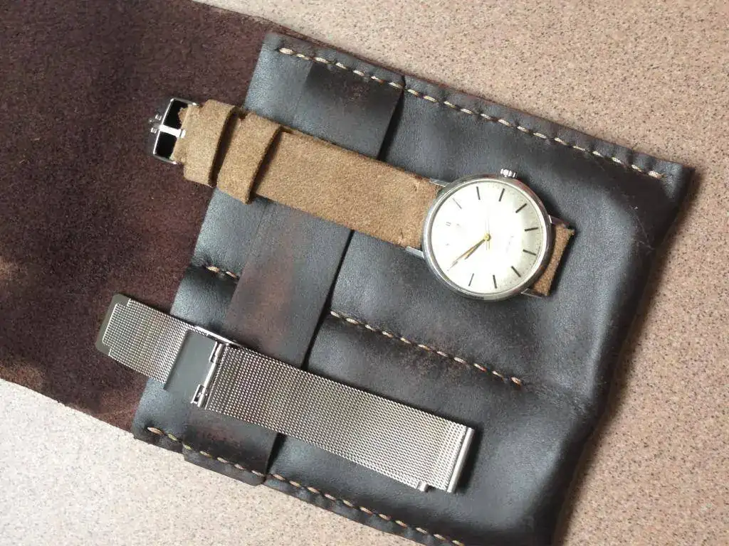 Este Omega se envía dentro de una funda de viaje de piel, con una correa artesana con hebilla Omega y una milanesa que considero adecuadísima para este reloj.