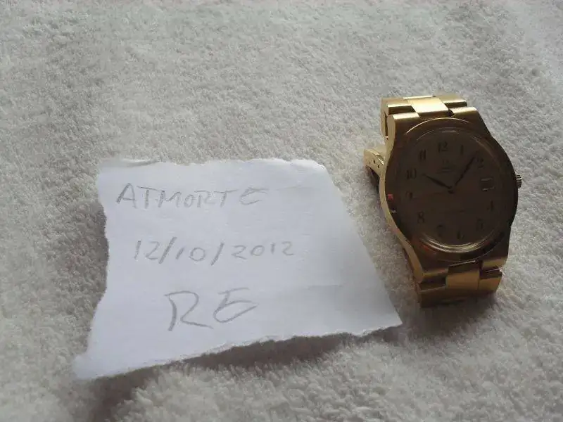Detalles a destacar: ligeros pelillos en el cierre y unas marcas en el fondo realizadas por un "relojero experto" (os garantizo que no ha tocado la máquina, está impecable y sin una marca)