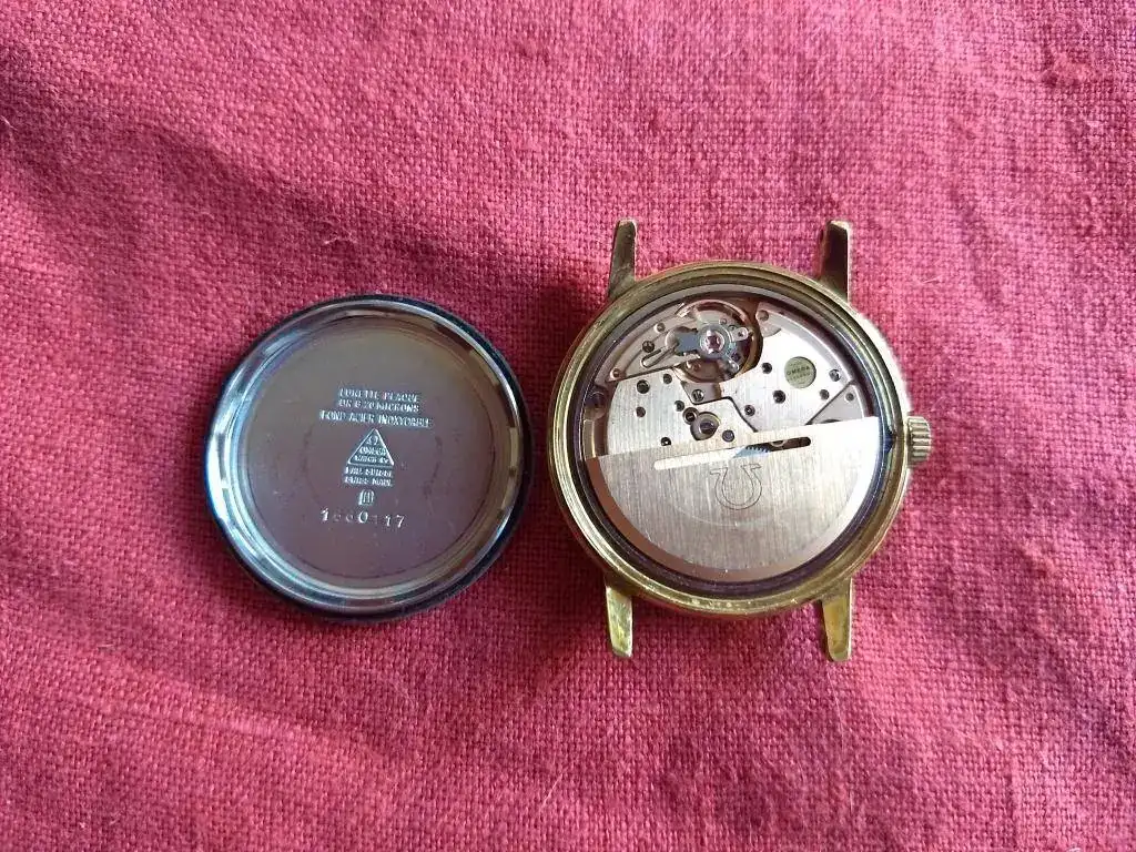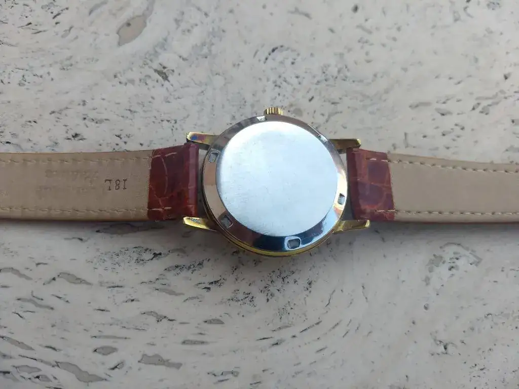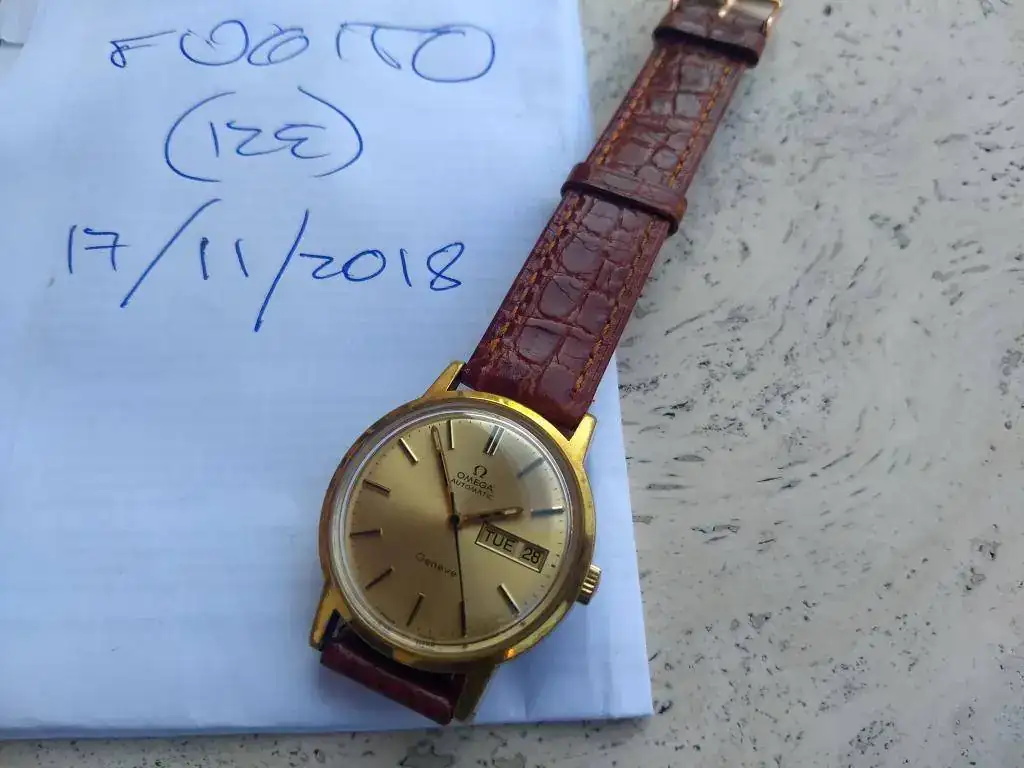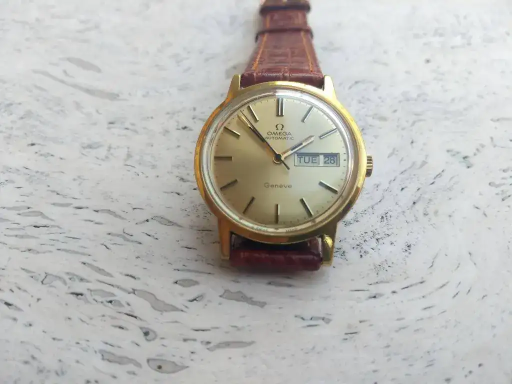Saco este Genève al que tengo gran cariño por ser el primer Omega que entró en mi caja pero mi colección toma caminos inesperados y ya le ha llegado su hora. Lleva un calibre 1022 en perfecto estado, al cual se le hizo un servicio completo hace tres años y desde entonces lo habré usado no más de 15 veces. Es un calibre automático Day-Date con hacking (detención de segundo) y cambio rápido de fecha.