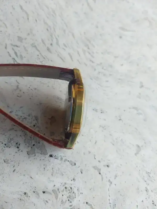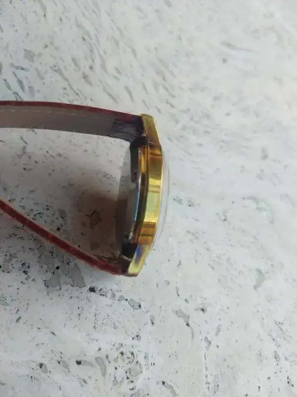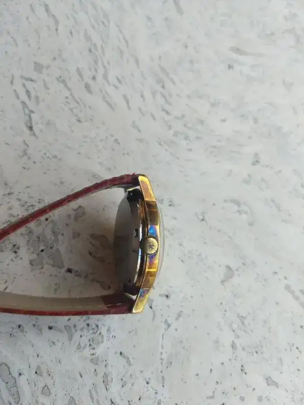 El estado es muy bueno, con dial "soleil" impoluto y caja sin golpes ni deformaciones. Plexi nuevo. El plaqué dorado ha cogido en algunas zonas una pátina iridiscente cobriza a mi parecer muy atractiva, ya que le da el contrapunto vintage justo en contraste con el dial intacto. La corona presenta desgaste.