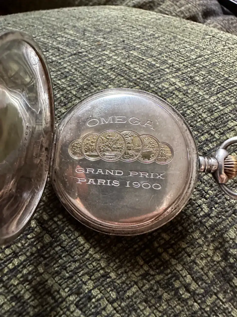 Hola grupo, ha caído en mis manos ( herencia familiar ) este bonito reloj de bolsillo de plata, es un Omega y tiene grabado: grand prix Paris 1900.