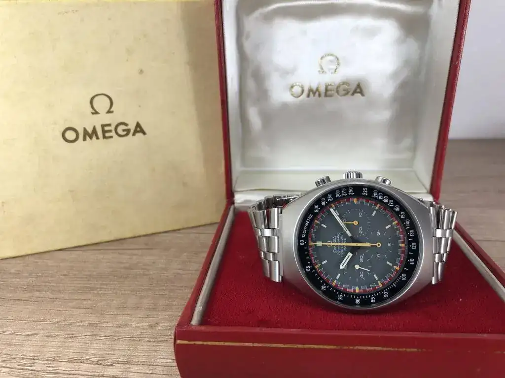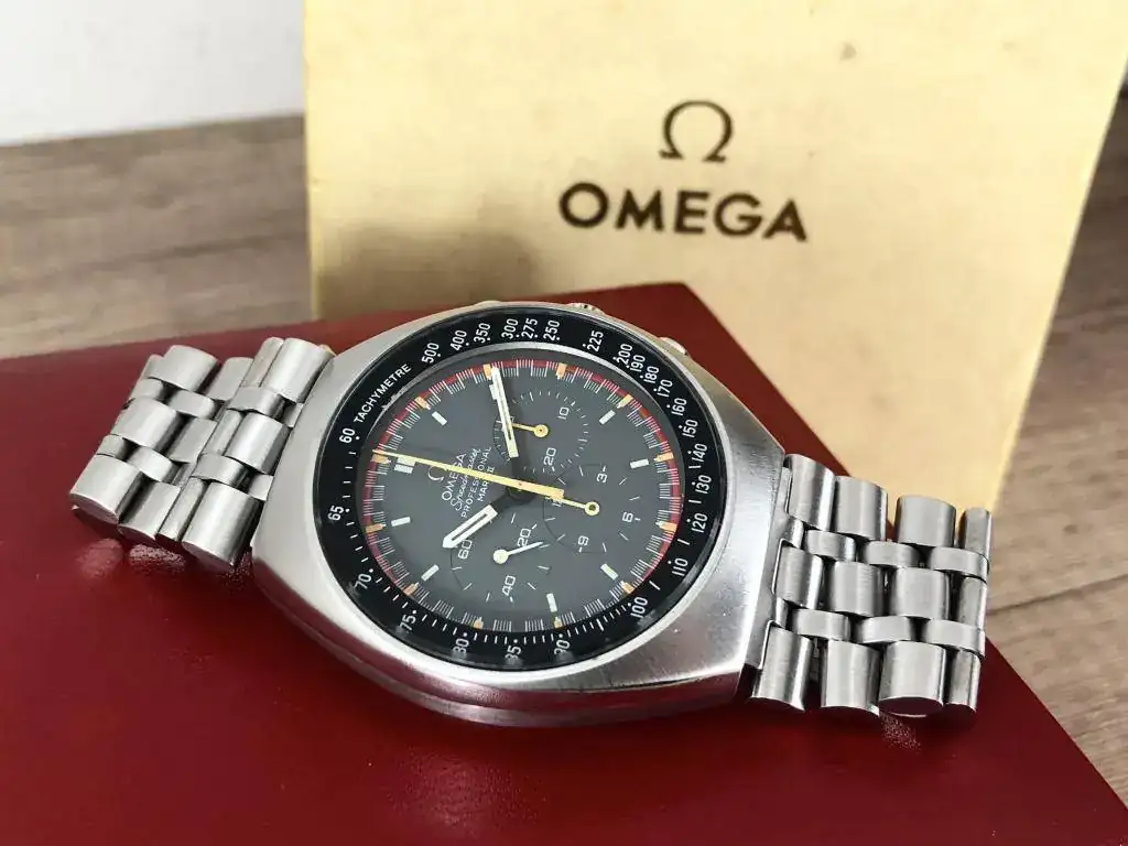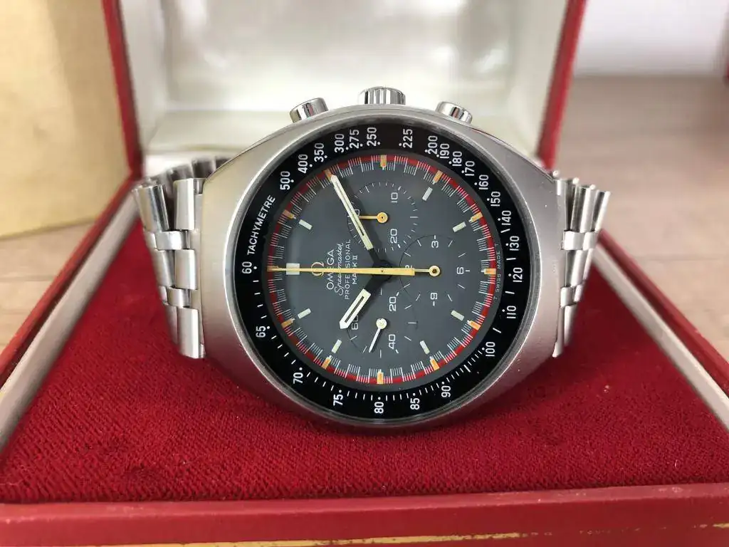 Saco a la venta este archiconocido por todos Omega Speedmaster Mark II en su versión con esfera Racing. El reloj como podeis observar en las fotos esta en muy buen estado y ademas tiene su caja original, difíciles de ver y bastante cotizadas. Además lleva un brazalete bastante escaso y raro, fabricado por Holzer & Cia para Omega, lo que lo hace un reloj aun más exclusivo.