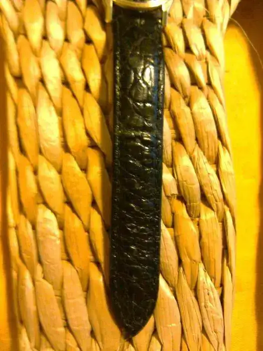 Te lo mandaría tal y como lo ves en la foto.La correa que llevaba es de re-estreno,de cocodrilo Guancho auténtico...