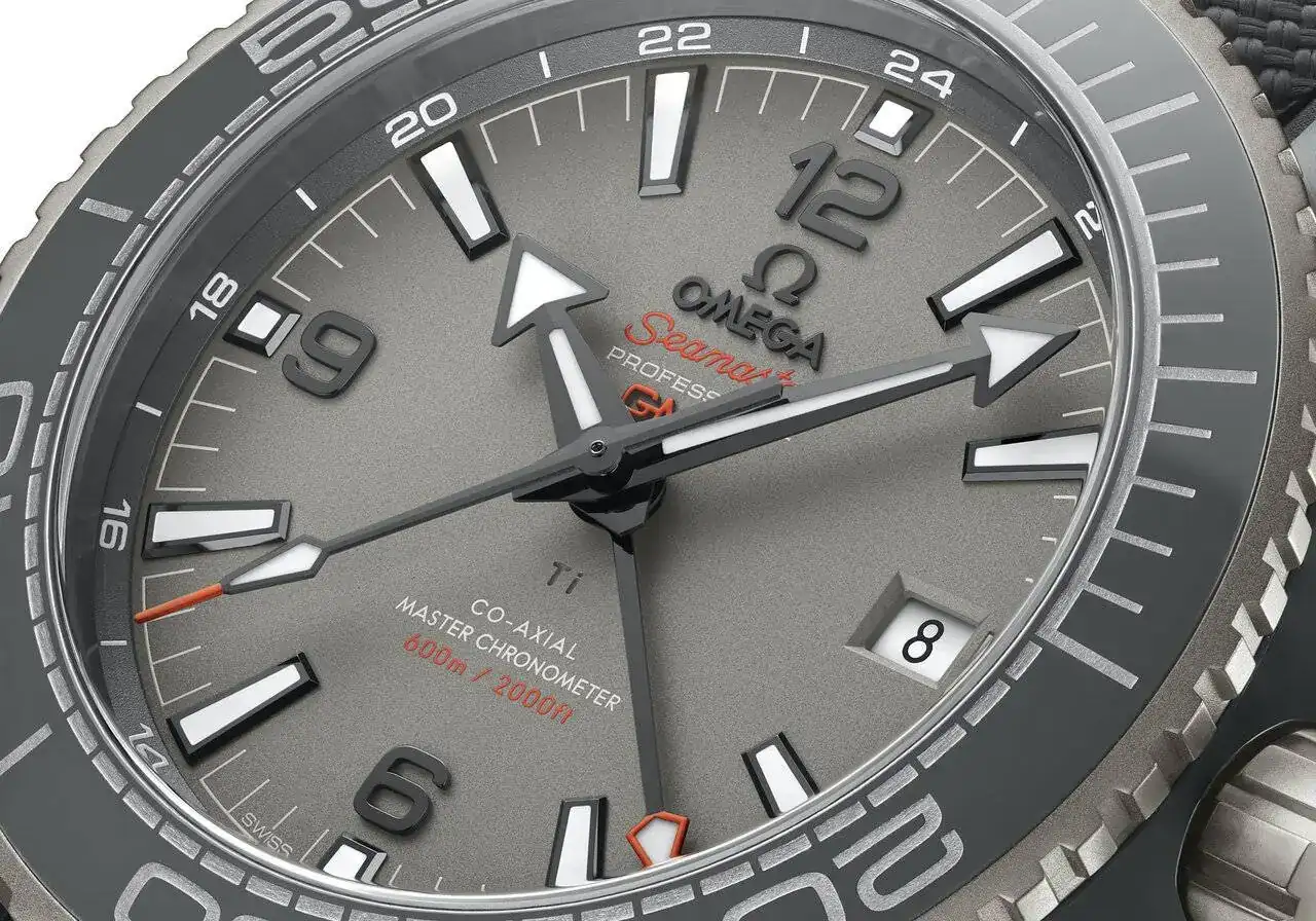 El movimiento es el calibre interno automático suizo Omega 8906 con 38 joyas, 23.200 vph y una reserva de marcha de 60 horas. Escape Co-Axial. Cronometr maestro certificado, aprobado por METAS, resistente a campos magnéticos que alcanzan los 15.000 Gauss. Funciones GMT y zona horaria. Equilibrio de resorte libre con resorte de equilibrio de silicio, dos barriles montados en serie, devanado automático en ambas direcciones. Placa principal y puentes de titanio de cerámica negra de grado 5. Decoración especial hecha por ablación láser.