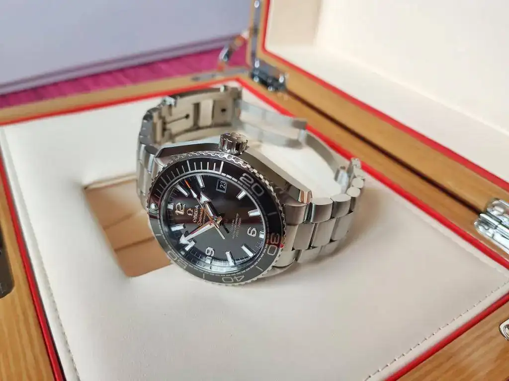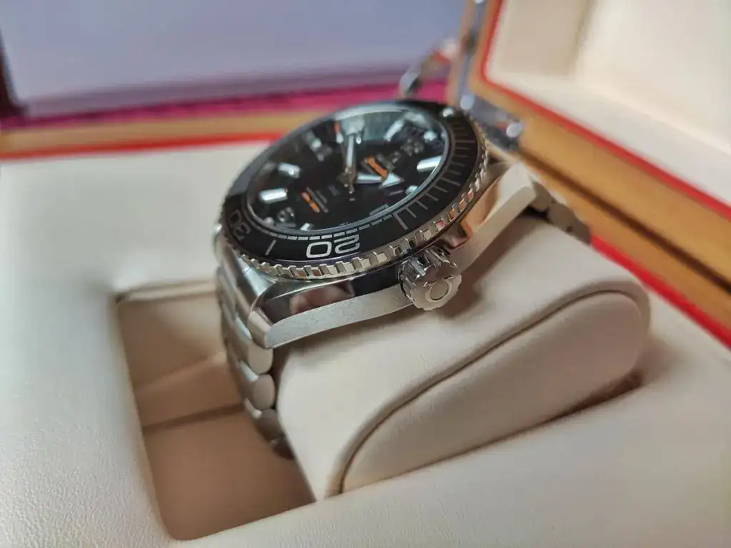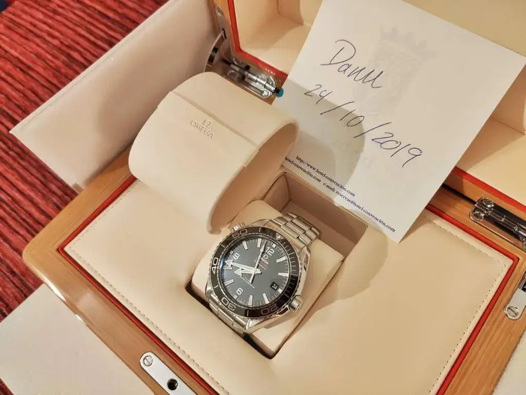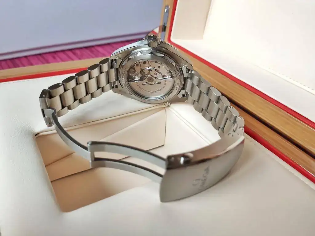 Se trata de un Omega Seamaster Planet Ocean nuevo, calibre 8900 con certificado METAS (lo que he comprobado es que está en CERO segundos al día), tamaño de 43,5 mm de caja pero que puesto, el lug to lug es de 48 mm como el 42 anterior de calibre 8500, lo que sumado al cambio de tipo de enlace del armis a la caja, que ahora es "hembra" y hacia abajo y no "macho" y recto, hacen que ajuste mejor a la muñeca que el modelo anterior.