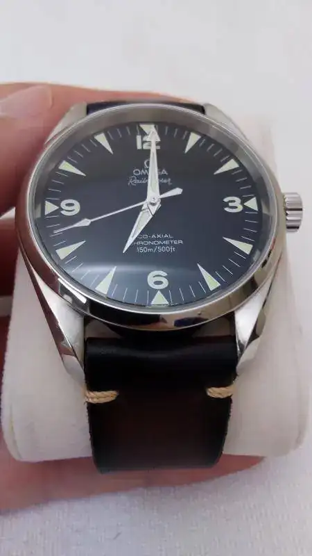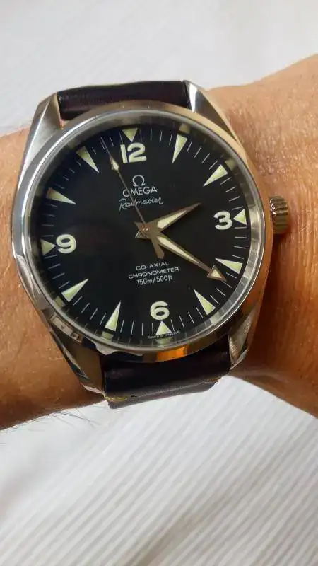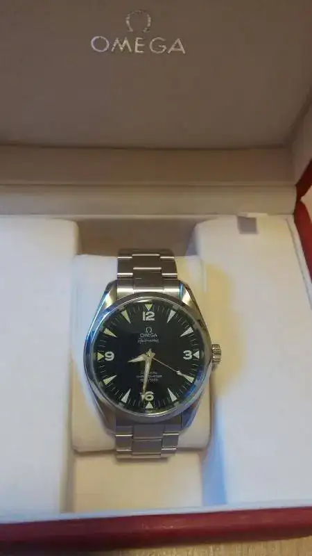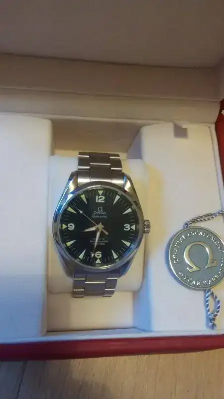 El reloj esta en buen estado si bien no es un reloj nuevo. Tiene leves marcas de uso en la caja. El armis no tiene marcas ya que casi siempre lo he usado con correa. El zafiro no tiene marcas. Nunca ha sido pulido. El reloj ha sido usado alternándolo con el resto de relojes de la caja. El reloj fue comprado por mi en una conocida joyeria. Esta completo, caja blanca, bombonera, tarjetas de garantia, pictogramas y certificado de cronometro, el lacre omega y manual de instrucciones. Todo en perfecto estado de conservación. Se entrega con todos los eslabones del armis y un medio eslabon adicional que adquirí posteriormente para conseguir un mejor ajuste. Se regala una correa Hirsch ranger marrón 21mm. No cambios por favor. El dinero esta dirigido a otra cosa.