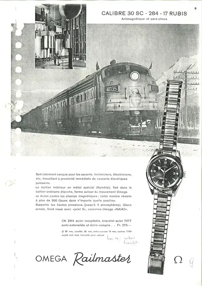 El tercero y último fue el Railmaster, un reloj que hace las delicias de los aficionados a los CUCO/GADA. Al contrario de lo que su nombre parece indicar, no se trataba de un reloj dedicado exclusivamente al mundo del ferrocarril (tan importante en Suiza en esa época, y en otros países donde la marca tenía presencia como Japón, Canadá o Estados Unidos), sino que su principal característica era dotar, a todo aquel que lo necesitase, de un reloj antimagnético (científicos, maquinistas, personal de centrales eléctricas o nucleares...), característica que lograba mediante una protección extra tras su caja trasera y con un dial algo más grueso que el resto de relojes "no magnéticos". También estaba la cuestión de la competencia: Rolex e IWC habían lanzado al mercado en 1954 y 1955 su Milgauss y su Ingenieur, respectivamente.