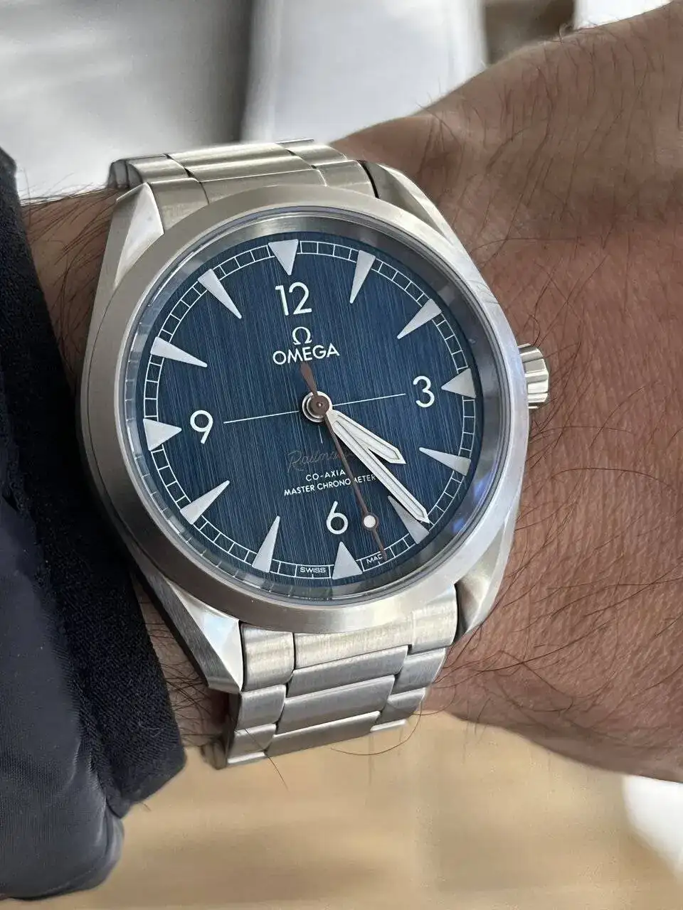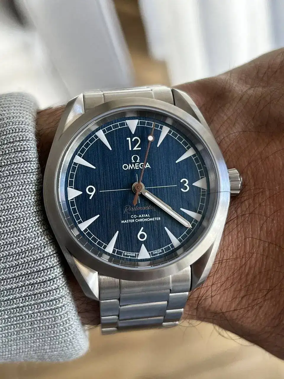 Una de ellas fue Omega. Me enseñaron algunas que les pedí, entre ellas un Railmaster, versión con armis. Me lo ofrecieron con un buen descuento ( no el que yo querría) y argumentaron que es un modelo que lo van a quitar de catálogo, no se si será así... También vi el azul con correa textil, no me gustó nada.