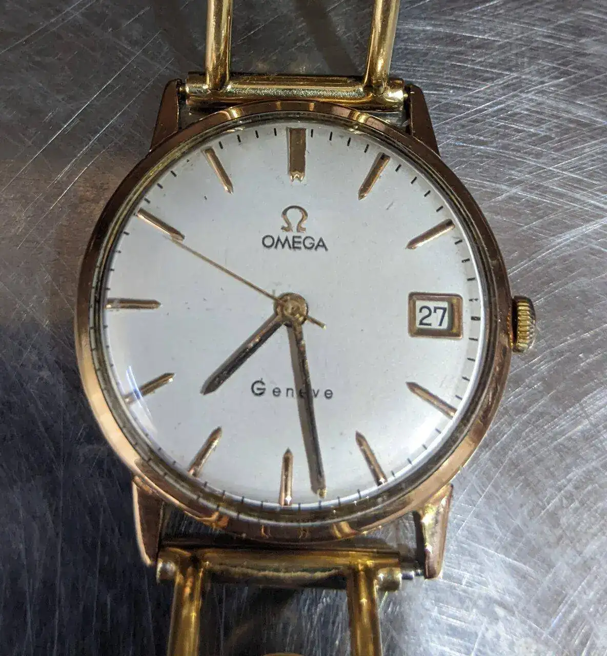 Buenos días a tod@s. El Omega cal. 611 de mi padre fue objeto de sucesivos intentos de restauración perpetrados por pseudo relojeros sin escrúpulos que destrozaron la caja, el dial y en parte también el calibre. El último iluminado cambió la máquina de cuerda por un cuarzo, incrementando todavía más los destrozos. Hasta que cayó en las manos de Del Campo Joyeros (gracias Miguel Ángel), en Murcia, quienes repararon, pulieron, sustituyeron, lo que hizo falta para regresar el reloj a la vida.