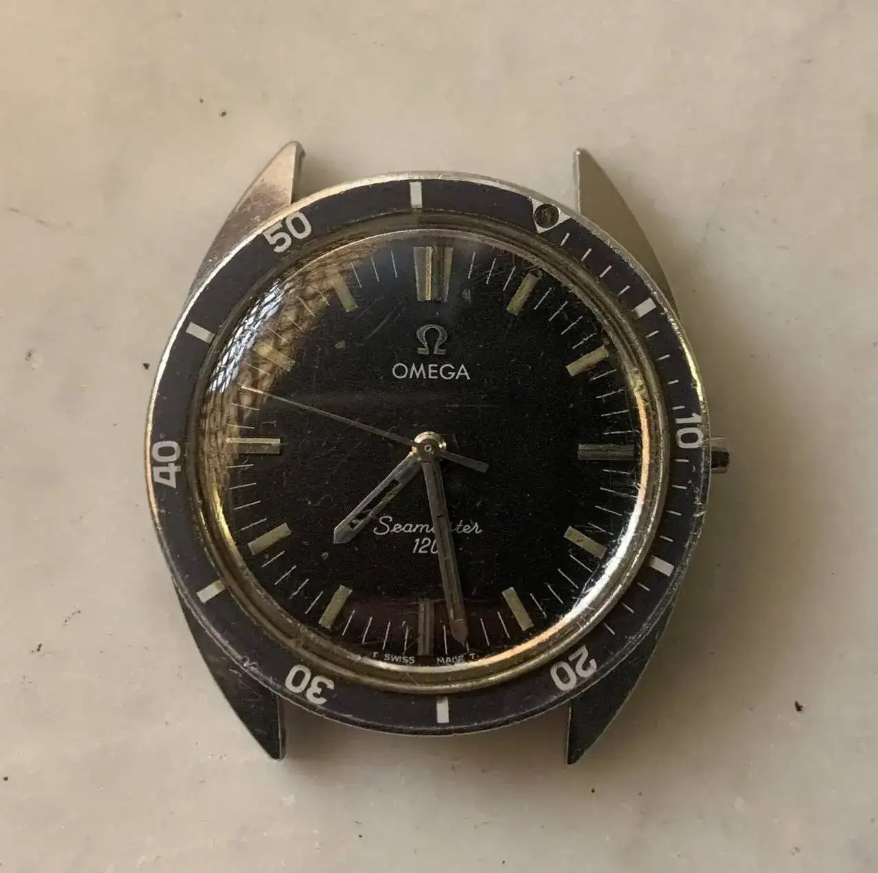 Me acaba de llegar este precioso Omega Seamaster 120 ref. 135.027 con calibre 601 y unas medidas que me gustan mucho. Esta sobre los 37mm. Tiene una pátina muy bonita.