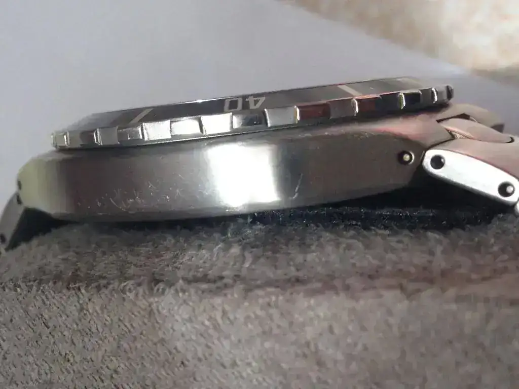 Me remito a las fotos para mostrar la verdad del reloj. Si, tiene roces, podéis ver que debió ser usado con una pulsera y esta ha producido pelillos circulares en la parte contraria a la corona.