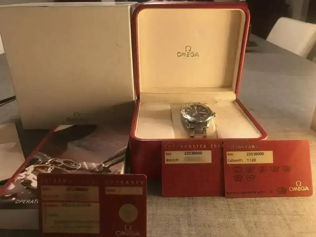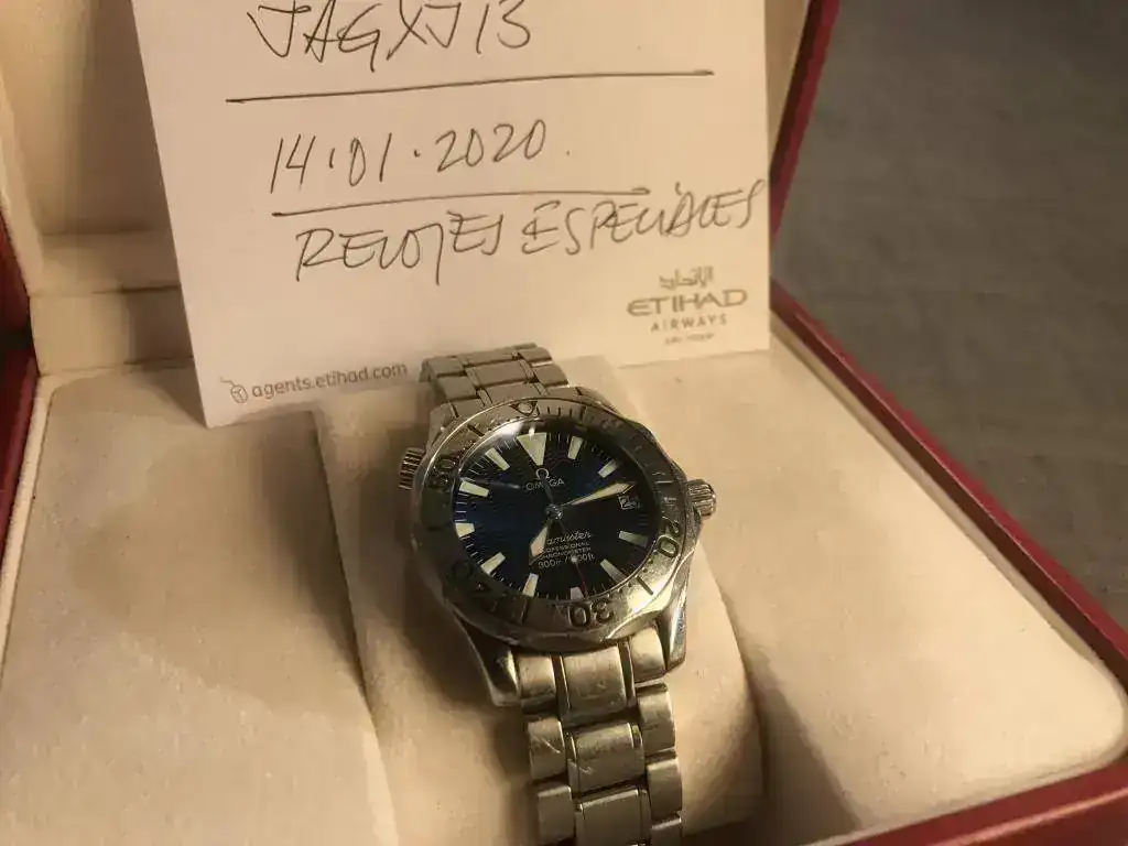 Pongo a la venta este Seamaster 2253. El reloj tiene uso y presenta marcas, pero nunca ha sido pulido. Comprado en ECI y con un único dueño. No hay marcas en el zafiro y la dotación está completa a excepción de los eslabones sobrantes que no han aparecido. La caja roja presenta desperfectos en la piel.