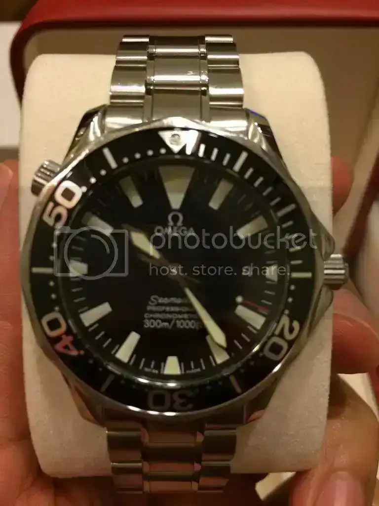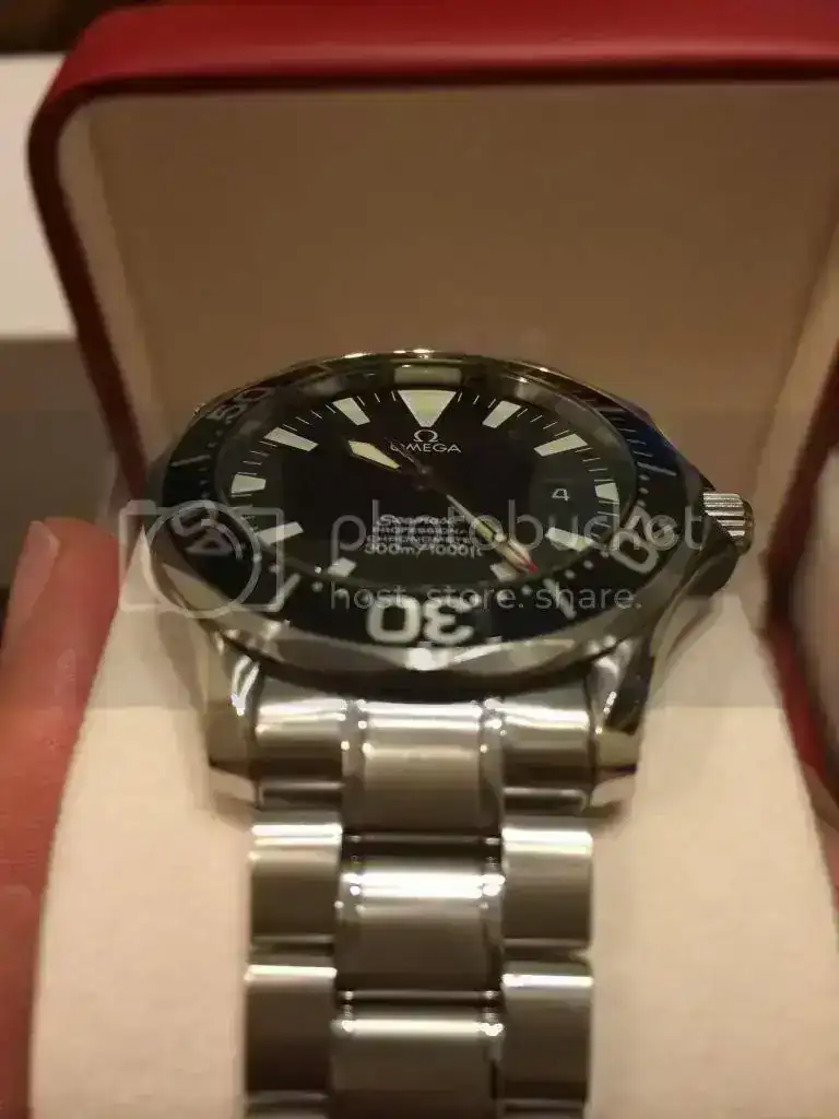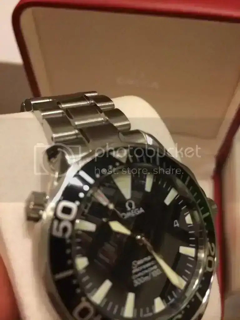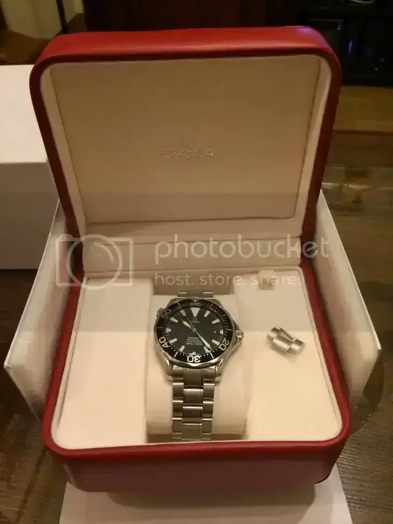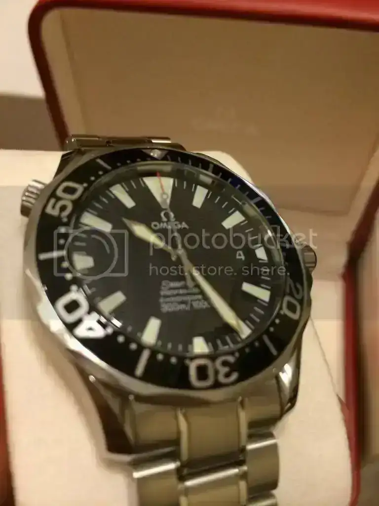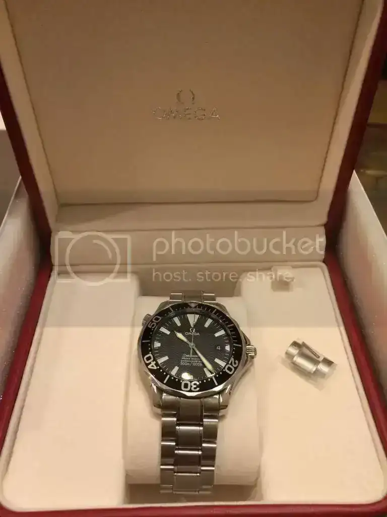 Con muchas dudas saco para venta el buscado Omega Seamaster 2254 Negrito, automático, año 2005, completo de tarjetas y pictogramas. Caja de cartón, libro, portadocumentos y bombonera roja completamente nuevos de hace un mes cambiados en CO Oficial. Eslabón sobrante y armis completo, zafiro perfecto, marcha correctísima, nunca pulido e insert en excelente estado.
