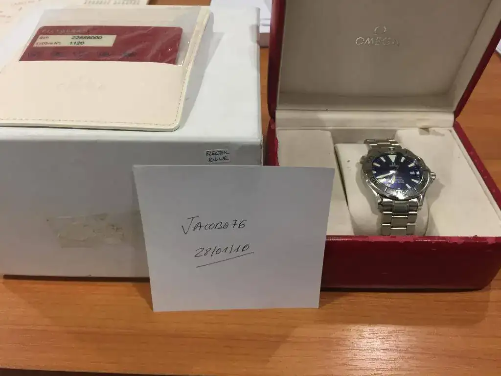Se trata de Seamaster 2255 Electric Blue,muy dificil de ver y con azul electrico precioso, calibre 1120 automático, va con armis y un eslabon sobrante.
