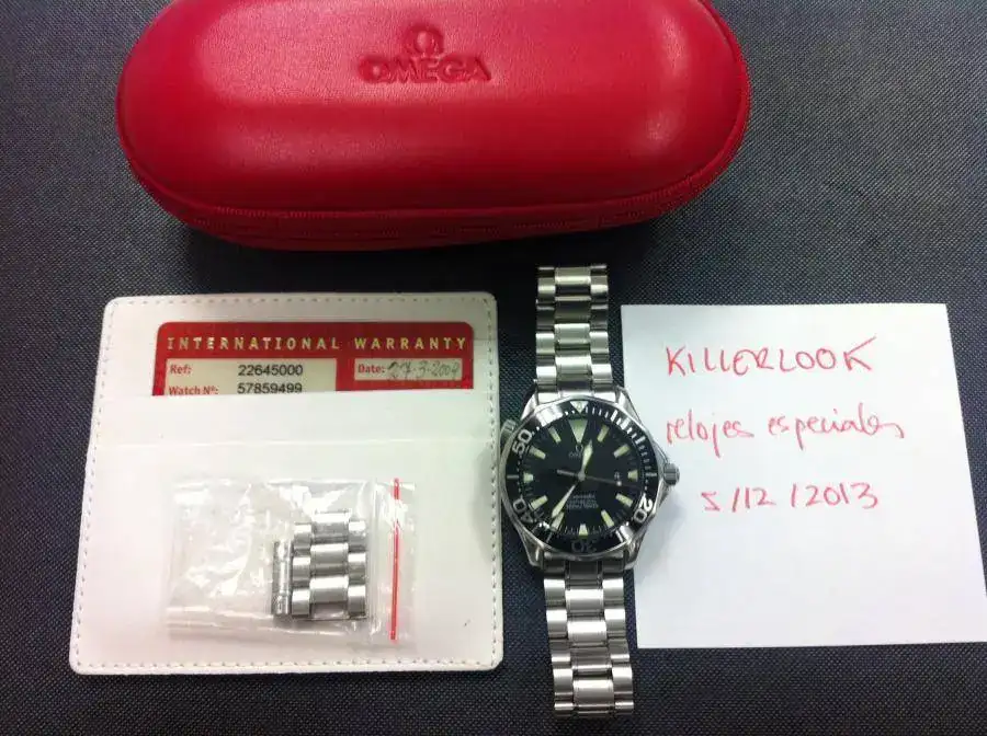 el reloj se entrega en un estado MAGNIFICO, ya que se ha usado muy poco. se entrega con estuche de viaje omega, tarjetero, tarjeta de garantia y eslabones sobrantes.