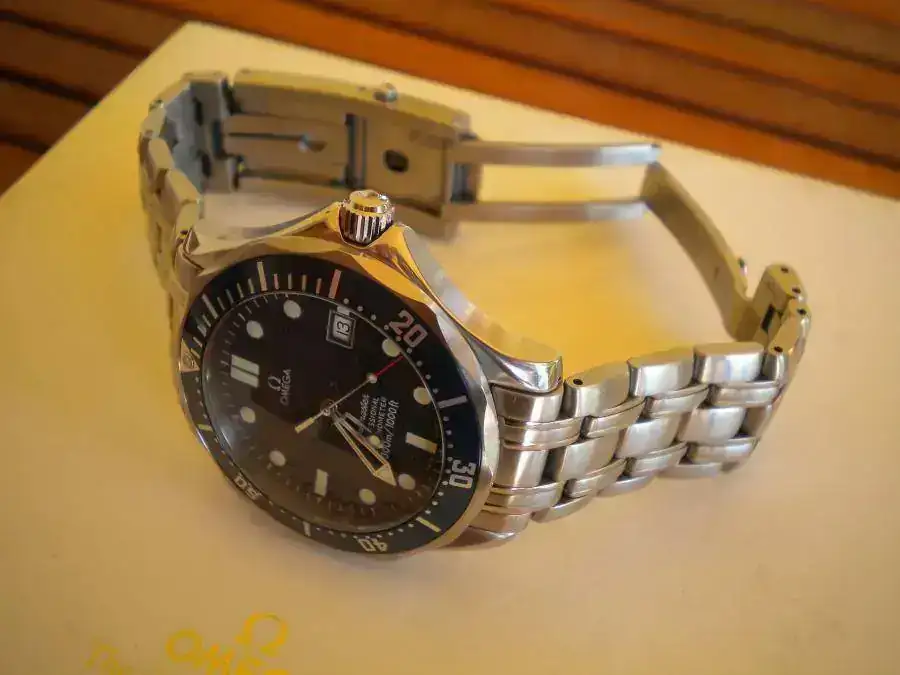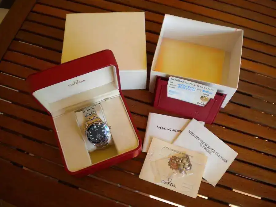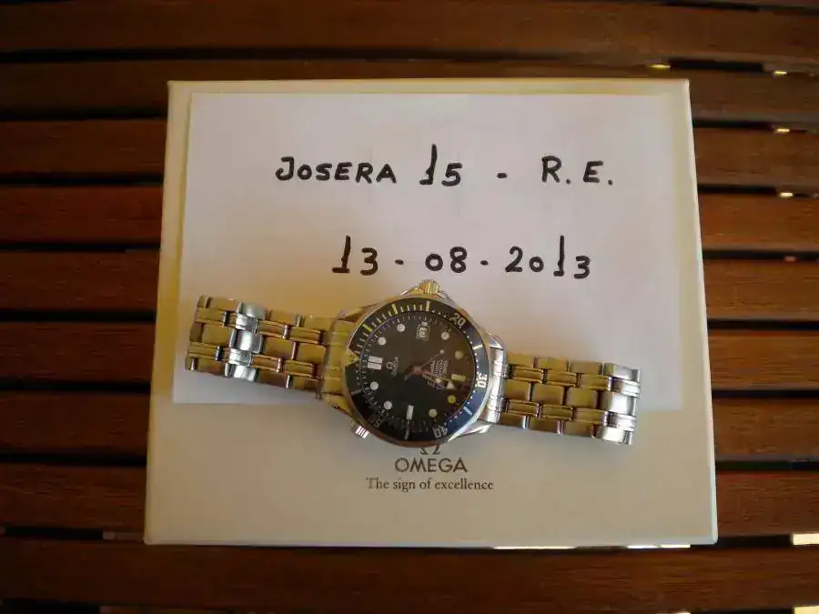 Con muchas dudas, pongo a la venta mi Omega Seamaster "Bond". Estoy detrás de una nueva pieza y alguno tiene que salir. Se trata de un 2531.80.00 en perfecto estado. Tiene su caja blanca, roja, documentación, eslabones, etc... Además, se le hizo una revisión completa con cambio de bisel y esfera hace uno par de años (casi 600 euros). Aunque es un modelo fácil de conseguir en el mercado de segunda mano, no debe haber muchos en el estado en que se encuentra éste. Aparte de que no ha tenido demasiado uso, soy un maniático con los relojes. Por eso cambié la esfera y el bisel, a pesar de que en Omega me dijeron que no hacía falta.