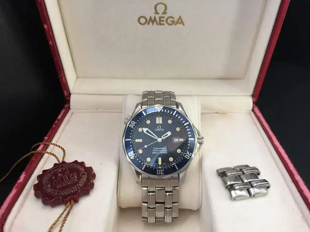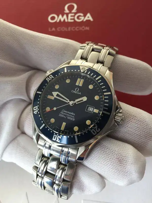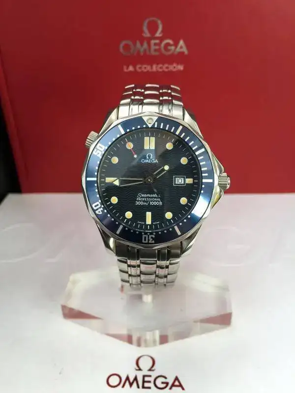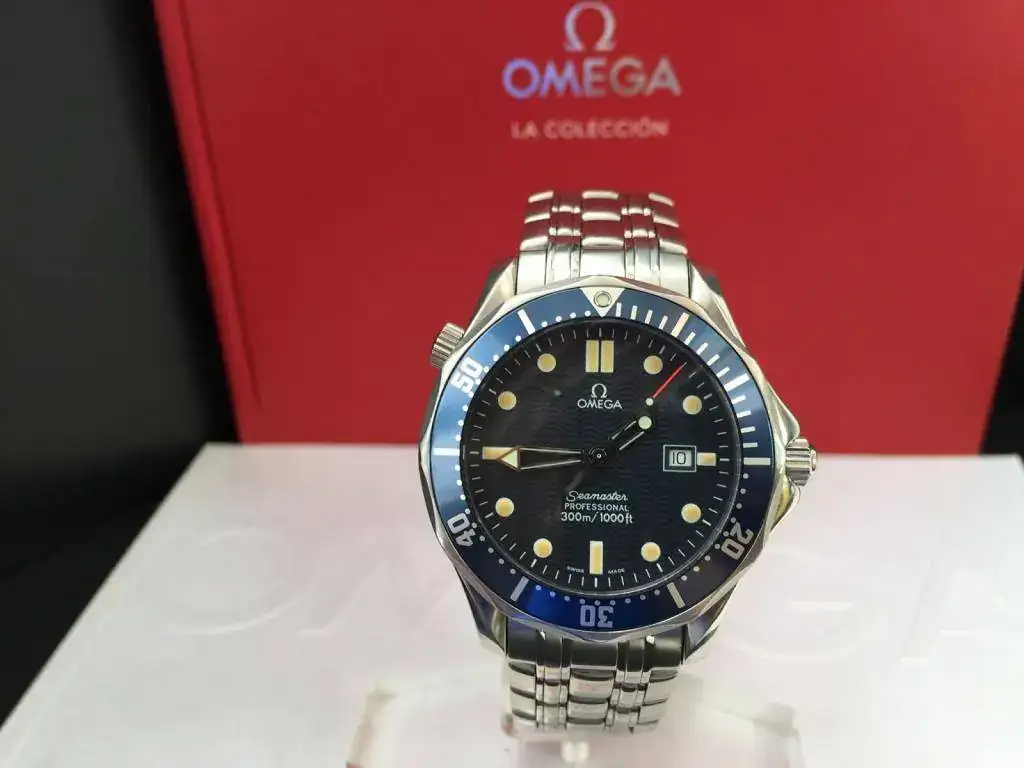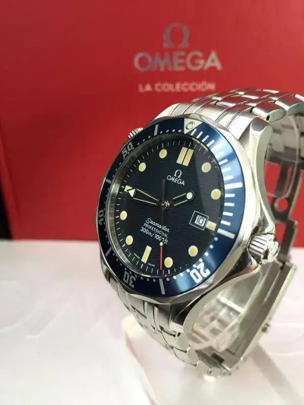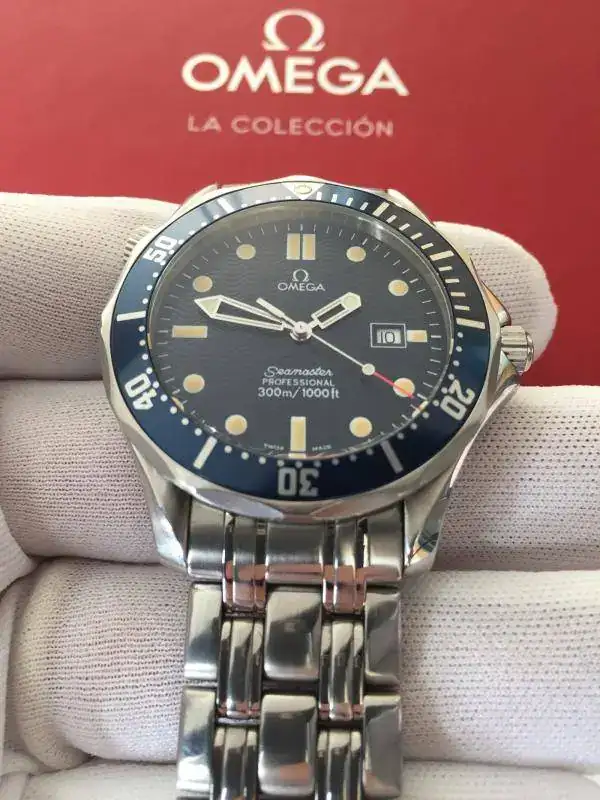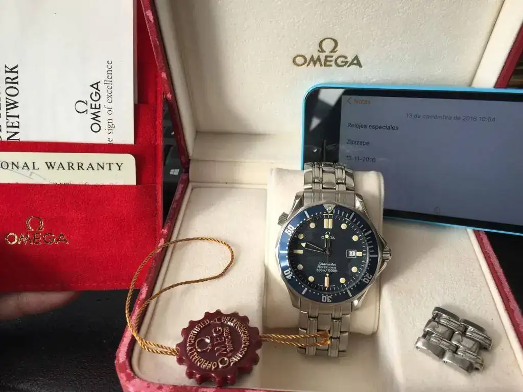 Buenos días a todos, con muchísima pena voy a sacar a la venta éste cuidadísimo "Bond" de cuarzo con caja y armis en acero del año 1996 con toda la dotación completa de caja, manuales, tarjetas de garantía y eslabones sobrantes del reloj, es decir tal cual como cuando fue comprado hace 20 años, como sabréis, esta es la versión más buscada de ésta generación de Seamaster maxime todavía este modelo que creo fue el año y tirada inicial de fabricación para este icono de los diver de omega, esta es una pequeña referencia a todas sus caraterísticas: