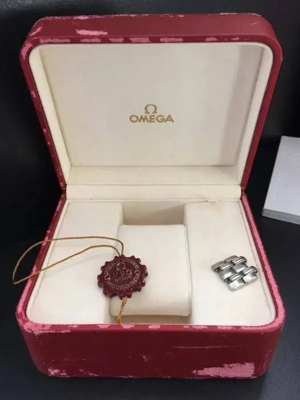Respecto al estado del reloj no puedo decir que esta de "10" porque ha sido usado aunque en contadas ocasiones y ha estado en el cajón casi siempre guardado pero no hay mas que ver las fotos, esta totalmente impecable, zafiro impoluto, caja perfecta, bisel sin una sola marca, la esfera de origen con los numerales en color ocre, armis completo con todos los eslabones sobrantes, manual..... garantía original..... libreto.... y el estuche original tipo bombonera que en su exterior si esta algo pelado algo normal en estos estuches de omega.