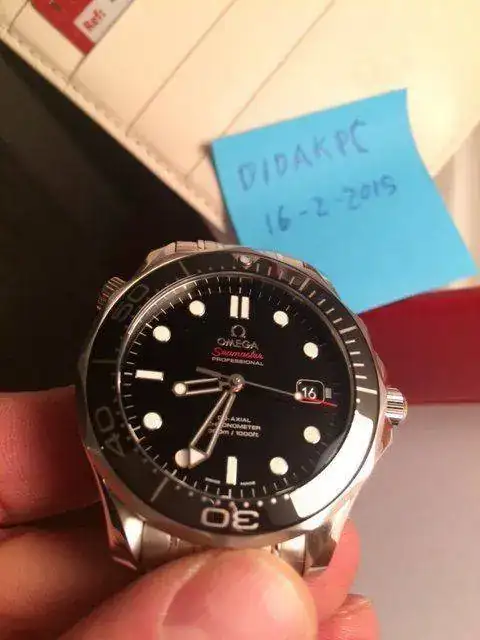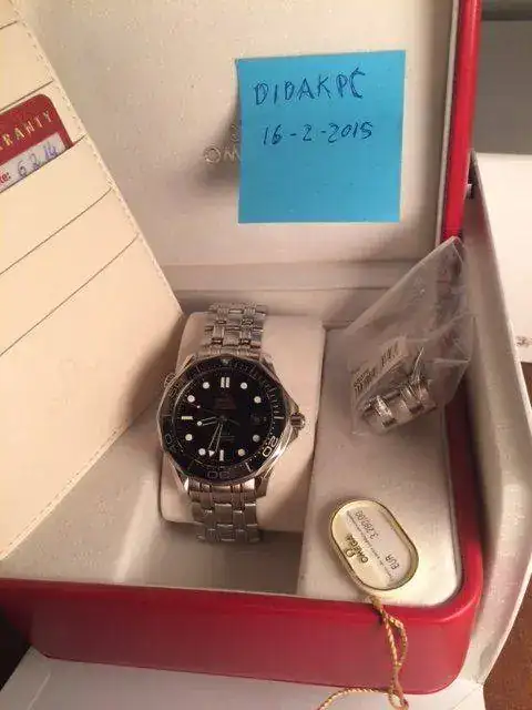 Se trata de un Omega Seamaster 300 cerámico de color negro. La garantía está fecha el 6 de Febrero del 2014 con lo que aún le queda garantía (no estoy seguro si Omega daba 3 años de garantía en sus piezas con movimiento co-axial). Esta como nuevo, apenas con unos pelillos en el cierre. Tiene toda su dotación completa.