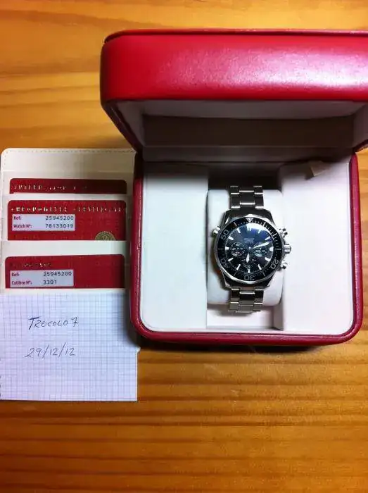 Buenas tardes compañeros. Saco a la venta este magnífico Seamaster Chrono F.P. en un estado 9'99 de 10. Se lo adquirí a un buen compañero del foro hace un mes aproximadamente. Le costó mucho encontrar una pieza de esta envergadura, tan bonita y potente como es este Omega, totalmente nuevo y no exageró ni un milímetro cuando me dijo que el reloj estaba de re-estreno. Y yo lo vendo en las mismas condiciones, contándoos que el reloj está perfecto, salvo una pequeñísima marquita en un costado de la caja, un puntito, pero que se ve al trasluz nada más, así que no asustaros que el reloj está de cine!