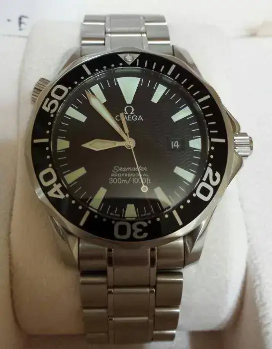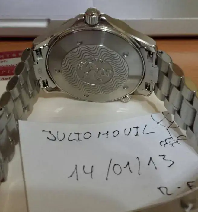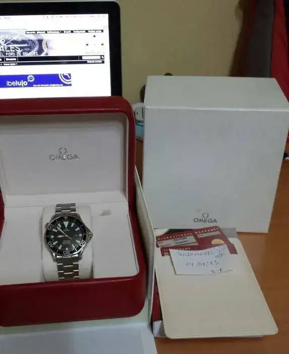 Pues nada con todo dolor de corazón pongo a venta este estupendo OMEGA SEAMASTER 300 cuarzo con toda la dotación incluidos 2 eslabones ( el negrito ), en un estado impecable diría yo para el tiempo que tiene mas o menos el reloj es del 2008 2009.esta en un estado del 1 al 10 de 9,5 yo diría impecable típicos roces en el cierre y los que tiene son pelos nada de picotazos ni nada.el precio de este reloj es de 900€ portes incluidos por nacex como siempre.un saludo