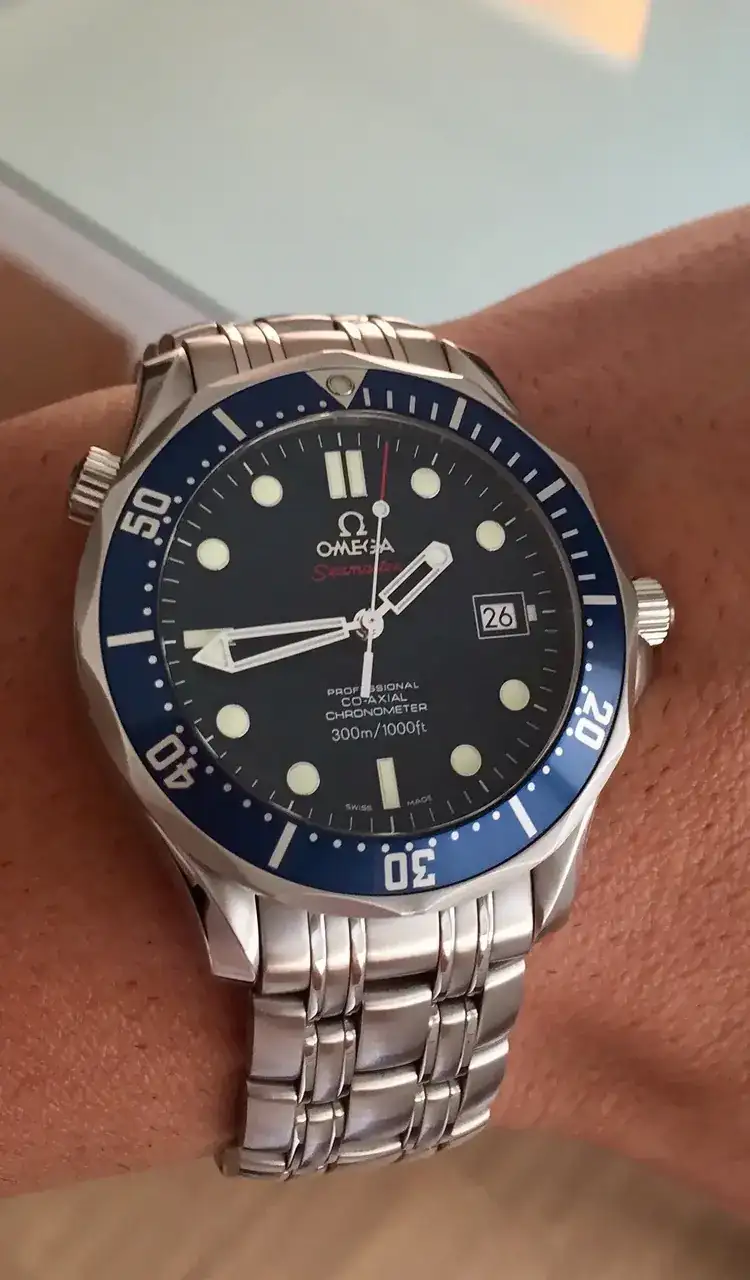 Pero el seamaster es azul. El Planet es negro con detalles naranjas, el Aqua Terra es azul, el Speedmaster negro...y así