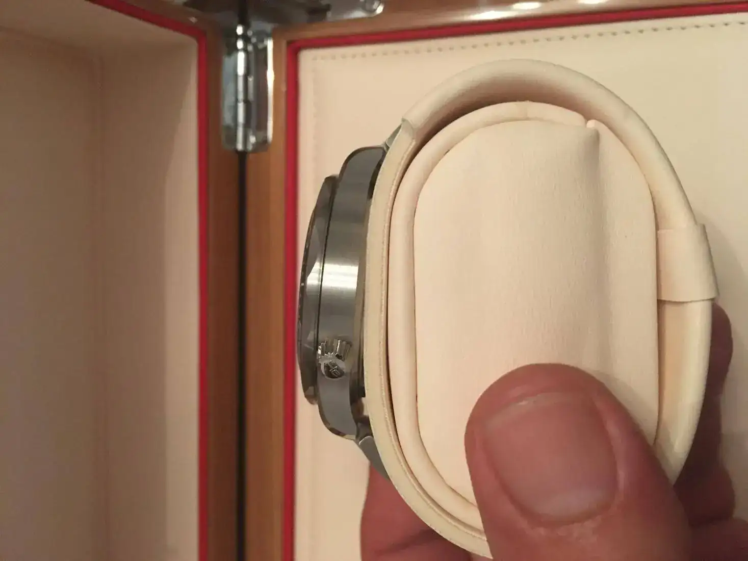 El estado del reloj es muy muy bueno 9 de 10 (Literalmente 6 Puestas). Lo único apreciable es un pelo en el cierre que se ve según incida la luz.
