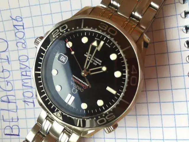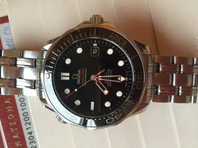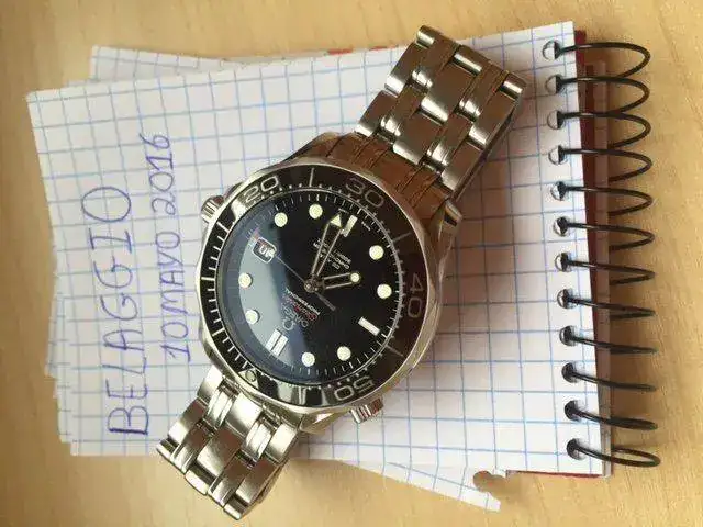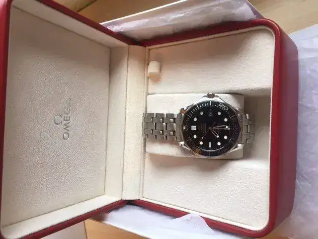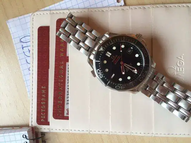 Vendo este Omega Seamaster 300 metros, es el modelo de bisel ceramico. Mide 42mm, lleva el calibre coaxial 2500 y un zafiro con un tratamiento AR que hace que pareca que no tiene cristal. El reloj es de octubre de 2014 y creo que omega da tres años de garantia por lo que le quedaria casi año y medio de garantia.En cuanto a dotacion se le acompaña de la caja roja reglamentaria, caja de carton, libreto de instrucciones y en correspondiente tarjetero con las dos tarjetas. El reloj se encuentra en muy buen estado solo destacar las tipicas marcas del armys.