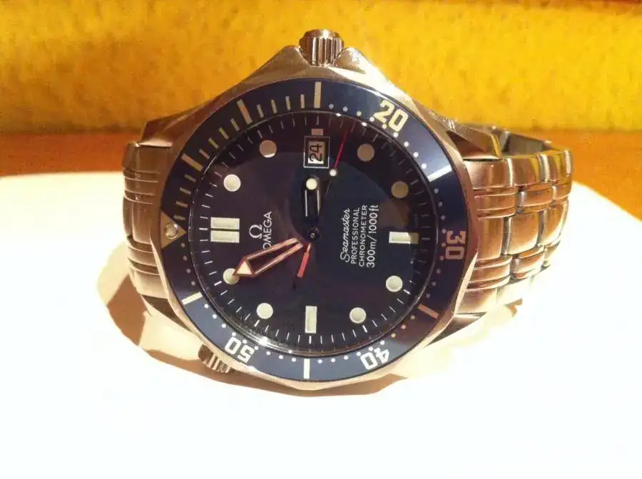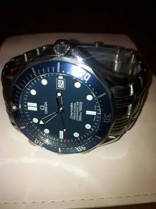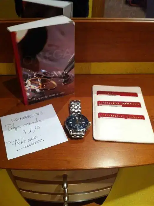 Pues en esta ocasión saco a la venta el conocido Seamaster Bond azul auto con calibre 1120, del año 2005. El estado es bastante bueno, aunque apreciables marcas de uso moderado tiene, juzgen ustedes. En cuanto a la dotacion se puede ver en una de las fotos que tiene documentacion completa en tarjetero omega, y el libro de instrucciones, un eslabon que puedo facilitar así como una caja para el envio, que sería lo unico que no corresponde al reloj. Por todo ello le pongo un precio de 1190€, con el envio aparte. Para cualquier cosiila por MP e intentaré contestar con la mayor brevedad.