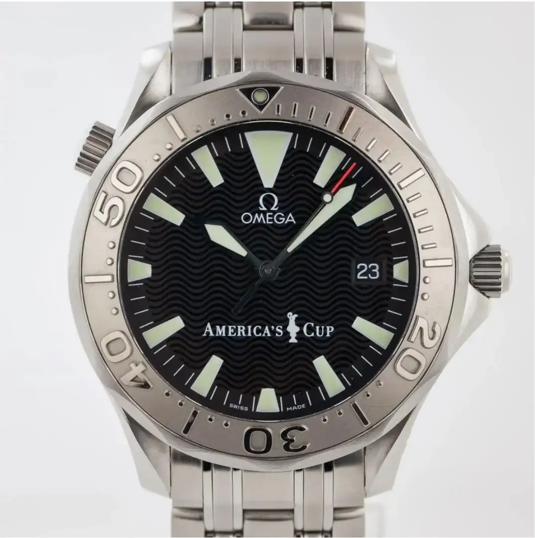 Lanzado en 1993, el Seamaster 300 se ha convertido junto al Moonwatch en el otro buey que tira del carro de Omega. Hace casi 30 años -1995- apareció la primera edición de la America's Cup de la mano de uno de sus embajadores más conspicuos: Sir Peter Blake, el navegante que, entre otras hazañas, ganó dos veces el trofeo.