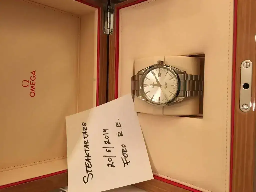 El reloj lo adquirí sin caja ni documentación, así que a mi llegada a Madrid me encargué de comprar la tarjeta de pictogramas a Omega, una caja nueva y una revisión completa con cambio de pila, juntas, y corona (la habitual en Omega), por lo que el reloj ahora está en garantía hasta Marzo de 2021 directamente por la marca. Adjunto la factura de Omega.