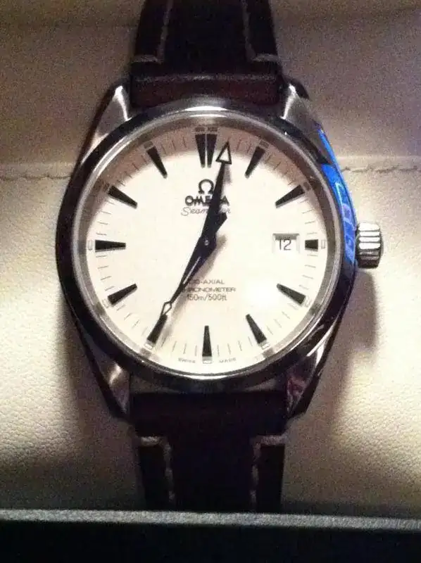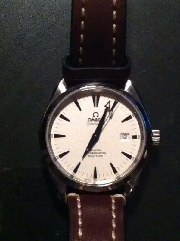 Pongo para cambio este Omega Seamaster Aqua Terra Coaxial. Un relojazo en mayúsculas, impresionante, que sale porque aunque me encanta puede que sea el reloj de la caja que menos me está llamando a día de hoy. Es posible que me arrepienta, quien sabe pero bueno ya sabéis de perdidos al río. El estado es bueno con alguna señal de uso moderado pero bastante bueno y una pequeña partícula que quedó dentro del reloj a las 2. Es lo único remarcable, de resto está más que bien. De marcha va más que correcto.