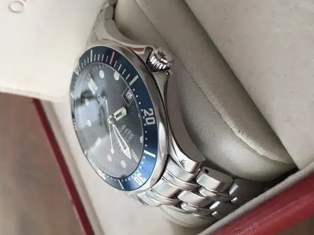 Se trata de un Omega Seamaster Bond automático con caja y documentación (todos los pictogramas). Tamaño 41,5mm. sin corona.