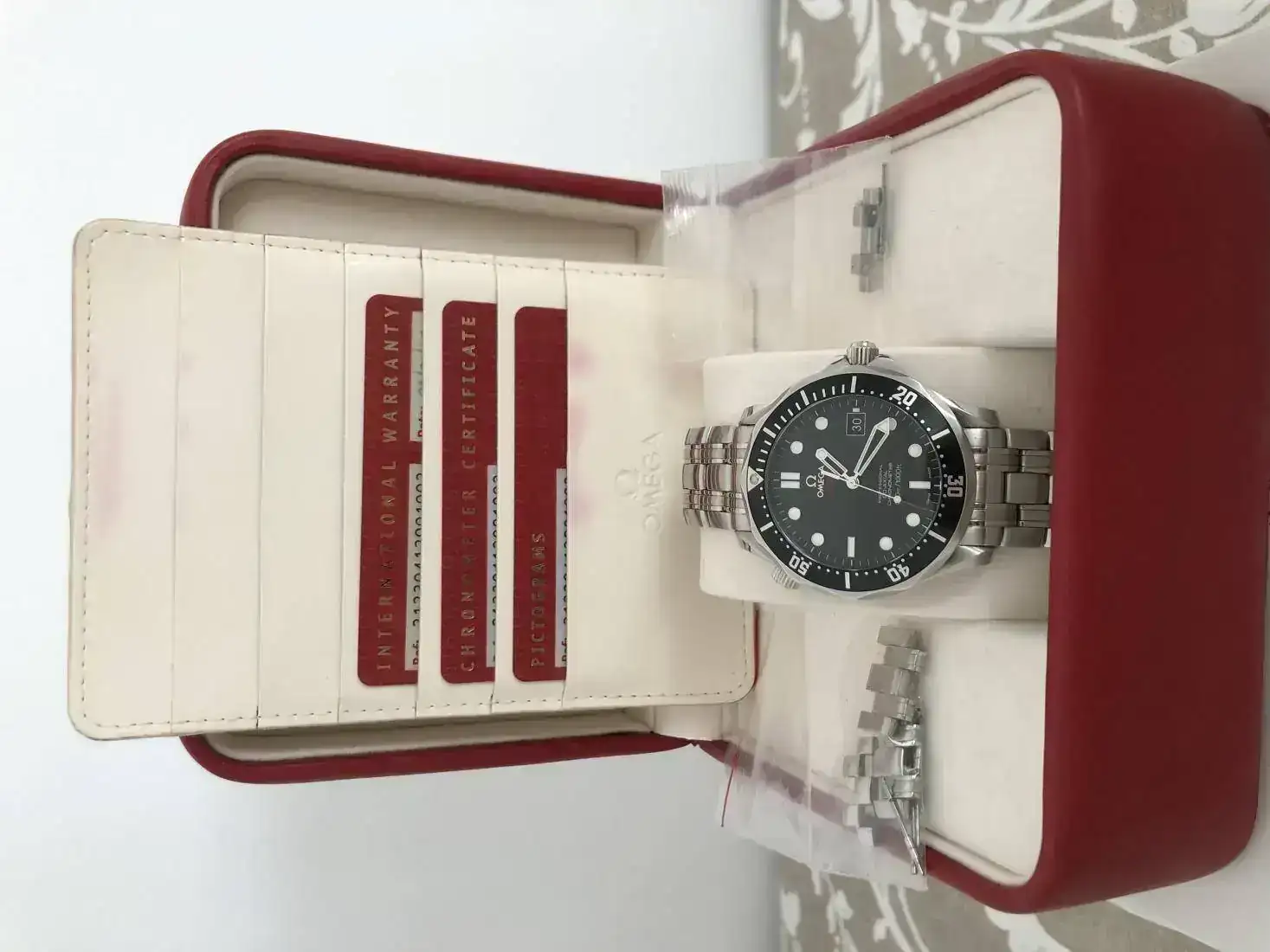 Buenas tardes compañeros pongo a la venta este magnifico omega bond olitas de los últimos que se hicieron el modelo ya coaxial pero aún conservando las olitas , se encuentra en un estado muy bueno , tanto que con un cepillado simple pasaria por a estrenar , se entrega el reloj con FULL SET , incluído el tarjetero de piel original de omega , caja omega roja de piel , caja blanca exterior y libro de instrucciones , no dejeis escapar esta oportunidad de tener un bond olitas negrito en este estado y full set😎, a continuación unas fotos del bichito y perdón por la calidad de las fotos y si salen de lado 😔