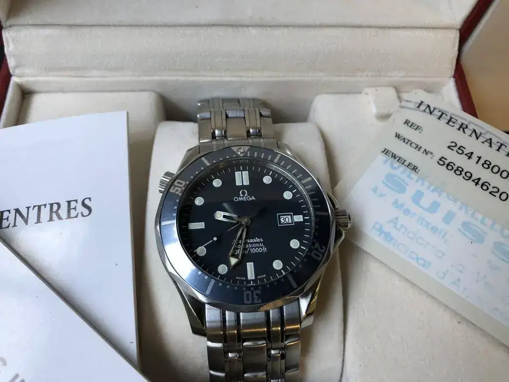 Se trata de un Omega S[/FONT]eamaster[FONT=Verdana, Tahoma, Helvetica, Arial] 300, estando el reloj en perfecto, y repito perfecto, estado y funcionamiento, el cual dispone de toda su dotación completa y que ha sido revisado completamente (estanquidad, marcha, acabado, etc....) hace unos meses. Como se puede ver en las fotos, no tiene marca respetable alguna. El armas está totalmente completo y lleva sus eslabones de sobra.