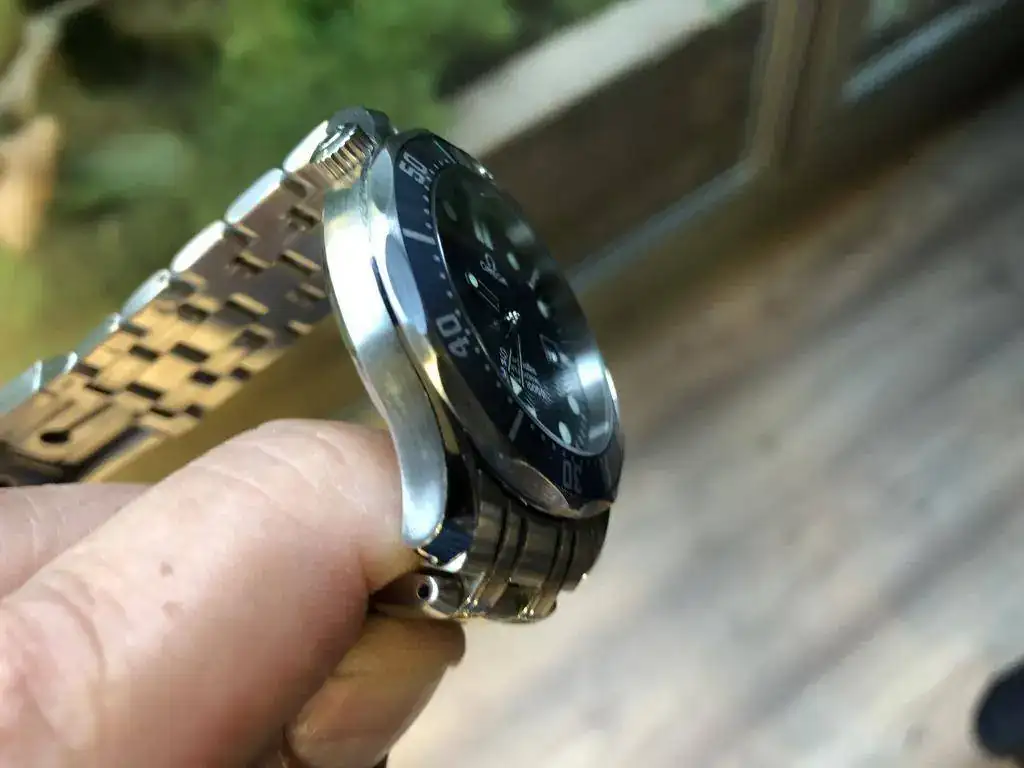 El reloj funciona perfectamente y el bisel, sin marca alguna, está tomando ese lindo color azul blanquecino que tanto gusta en este reloj. Es sencillamente precioso.