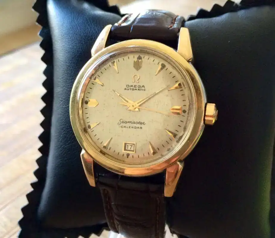 pues saco a la venta este Omega Seamaster Calendar con calibre 353, el primer calibre automático con fecha a las seis y que tiene la particularidad de haber sido fabricado en solo 43000 unidades. Es una pieza bastante rara y mas en este buen estado. El reloj ha sido revisado por un compañero del foro (mas detalles por privado) y marcha muy bien. Plexi original Omega con símbolo en el centro. Lleva corona original firmada, índices arrow aplicados igual que el símbolo omega de la esfera. Viene con una correa en alligator usada pero con algunos meses de vida por delante y hebilla original de época.