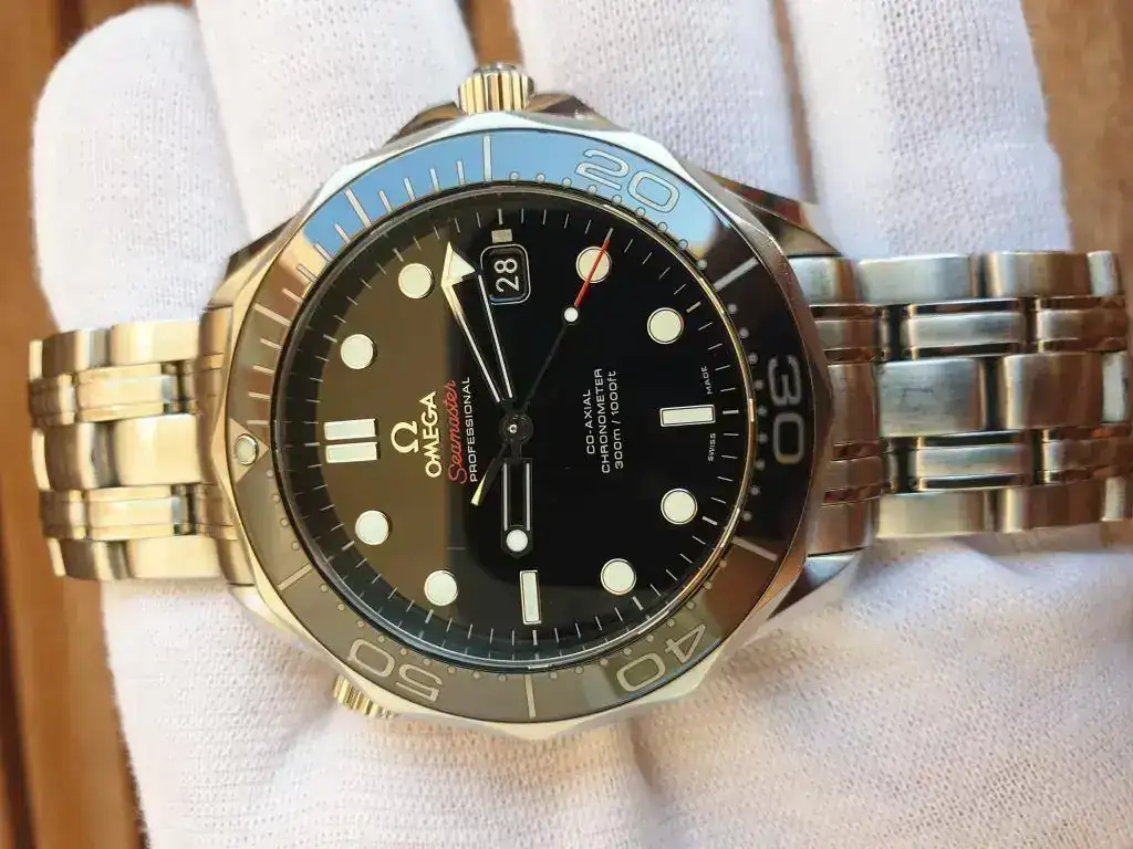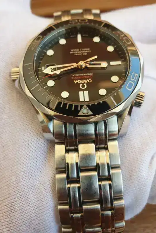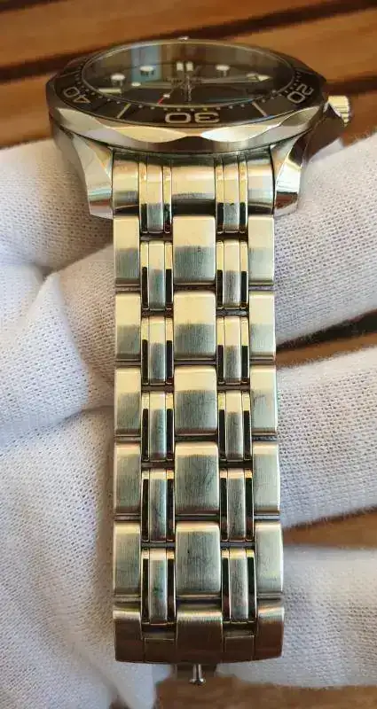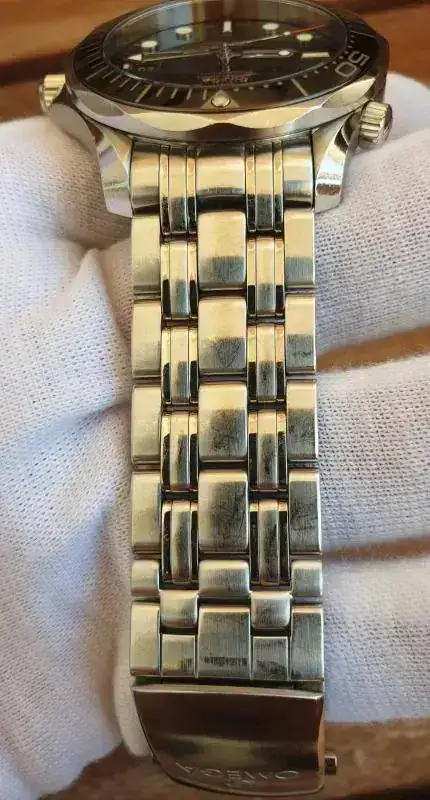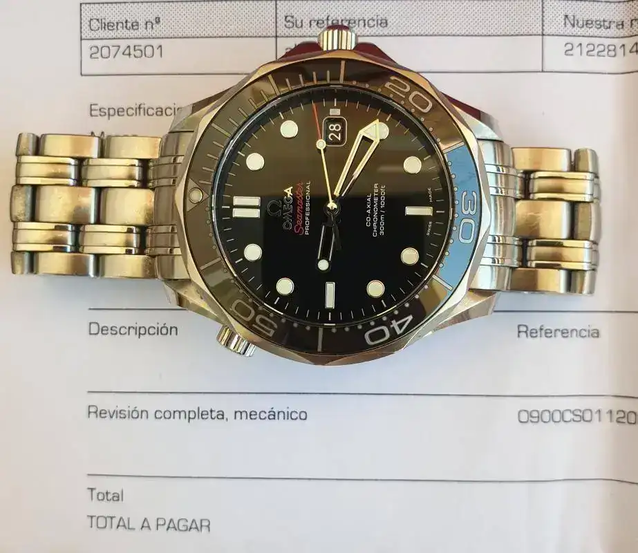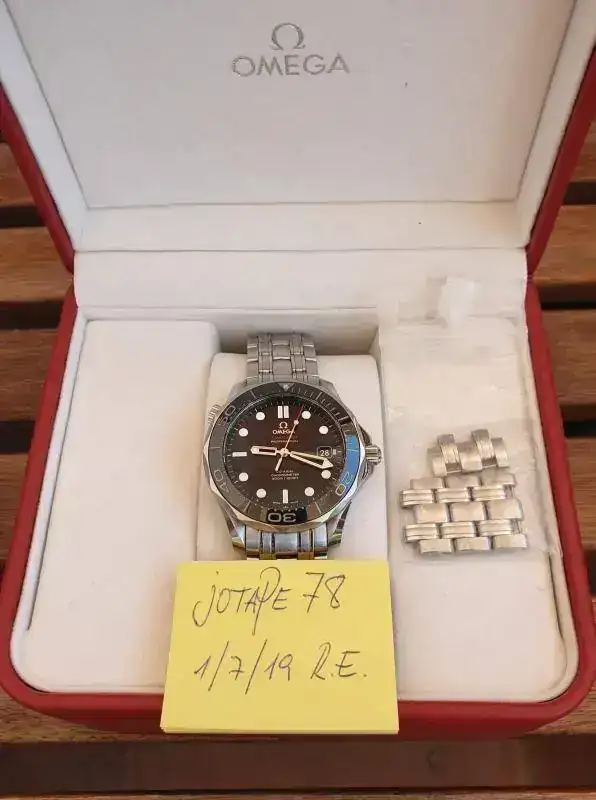 Pues turno ahora para esta mítica pieza, ya descatalogada y prácticamente imposible de conseguir nueva. El estado del reloj es usado. Presenta marcas,nada profundas,pero visibles,sin golpes. Si buscas un reestreno,como nuevo o impoluto,éste no es tu reloj. Lógicamente nunca se ha pulido. A destacar un pequeño pelo en el cristal, a la derecha del índice que marca las 10,que se aprecia según incida el ángulo, pero que ahí está y prefiero que queda claro. Reflejaré éste detalle en el precio. Por lo demás, viene completo,con todo su set. Ajustado para muñeca de 16cm,pero con 4 eslabones adicionales,con lo que nadie tendrá problemas en ese sentido. Lleva puesto un medio eslabón, muy útil para ajustarlo lo mejor posible. También añadir que se le hizo una revisión completa a nivel mecánico hace dos años. Aportaría también dicha factura. En esta ocasión no estoy interesado en ningún cambio. Ahora paso a la ficha y varias fotos del conjunto.