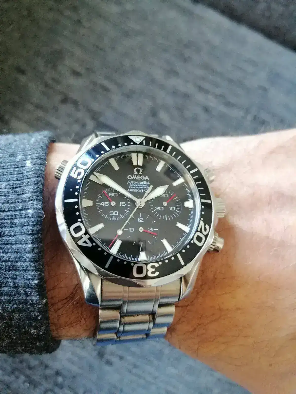 Hola a tod@s! Saco a la venta este relojazo en buen estado de conservación y funcionamiento perfecto, se trata de un Chrono automático edición America's Cup, sumergible 300m, armis con extensión de buceo... La caja, cristal y bisel no presentan desperfectos reseñables.. El cierre sí presenta el desgaste del uso dado que no ha sido nunca pulido.. Sin más, os pongo características y unas fotos. Gracias al foro por el espacio.. Un saludo!!