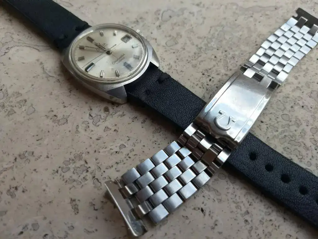 El reloj es completamente de origen, incluido el plexi firmado Ω, y está en muy buen estado para su edad como se puede ver, aunque tiene alguna marca del tiempo en la esfera (visible a contraluz) y por ello lo saco a un precio muy inferior al de mercado. Se entrega con correa nueva artesanal Made in Sweden y con el armis original, aunque este último es para buscarle eslabones o ponerle extensión, ya que está reducido en exceso.