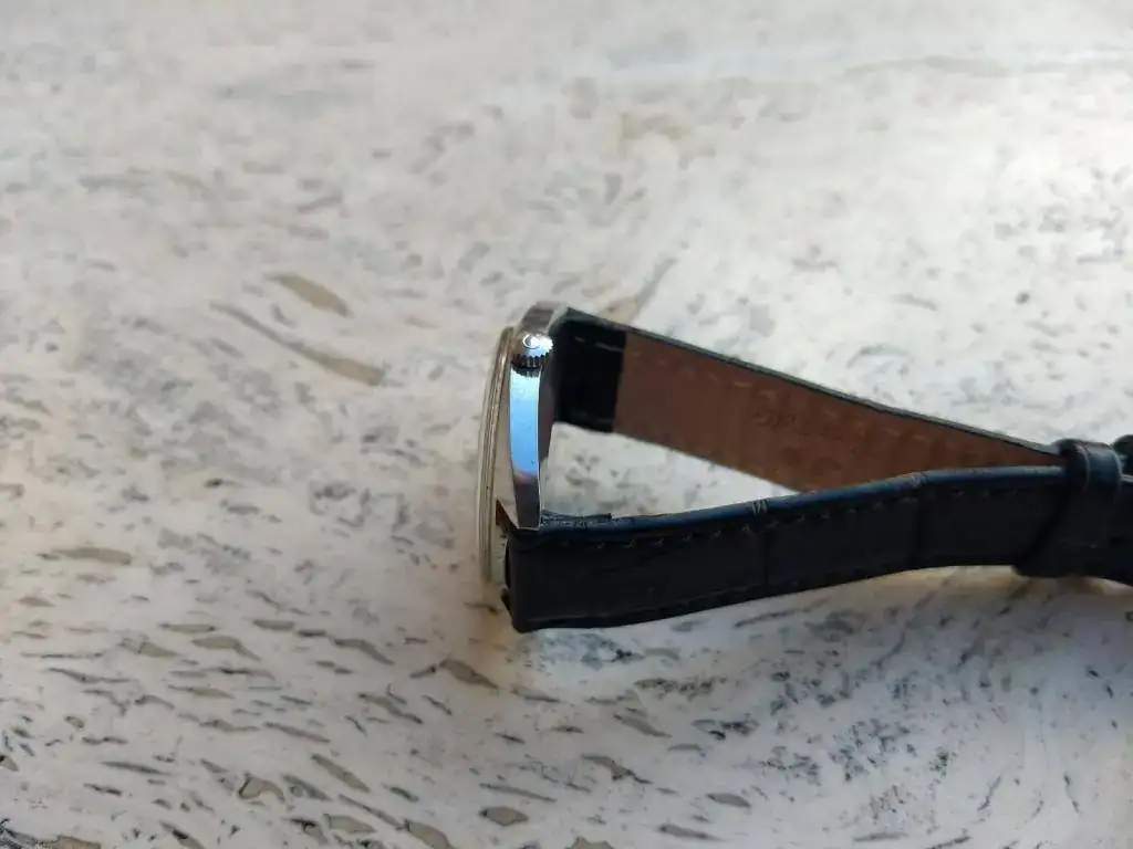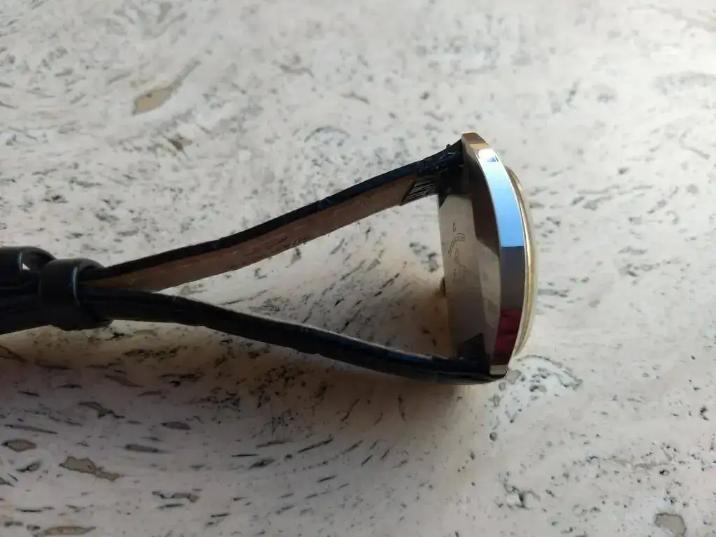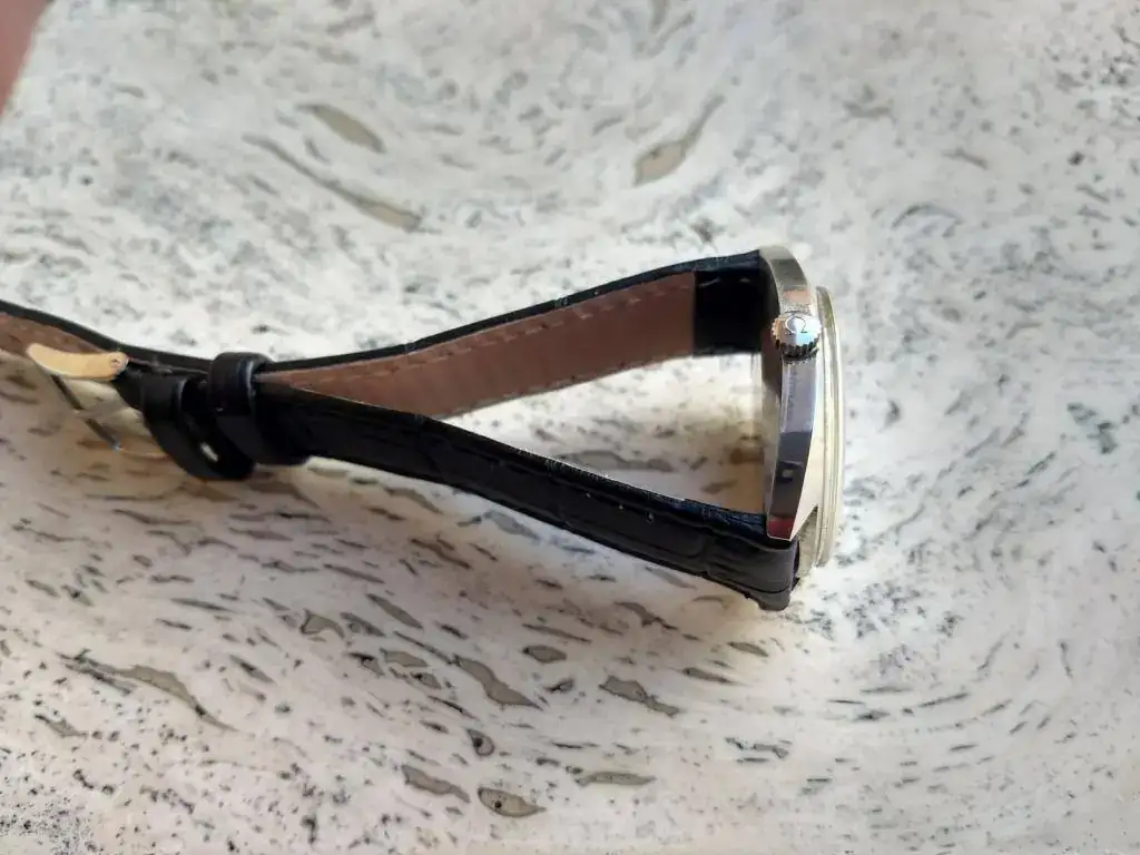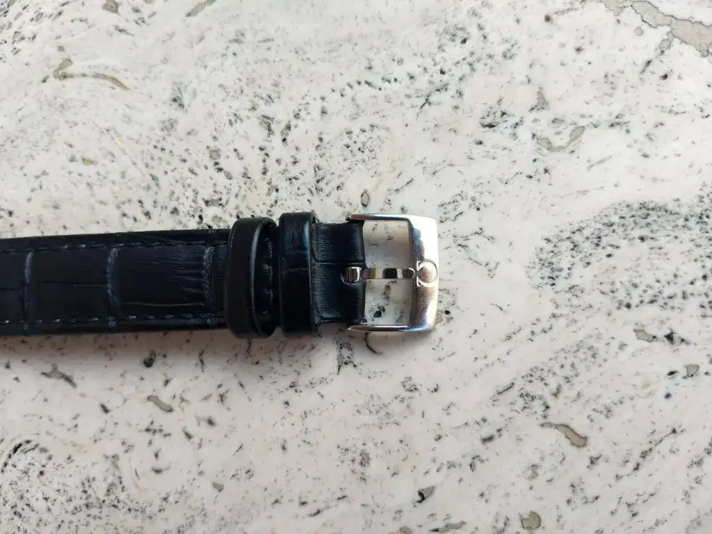 Se entrega con correa negra de piel prácticamente nueva y hebilla firmada Ω nueva.