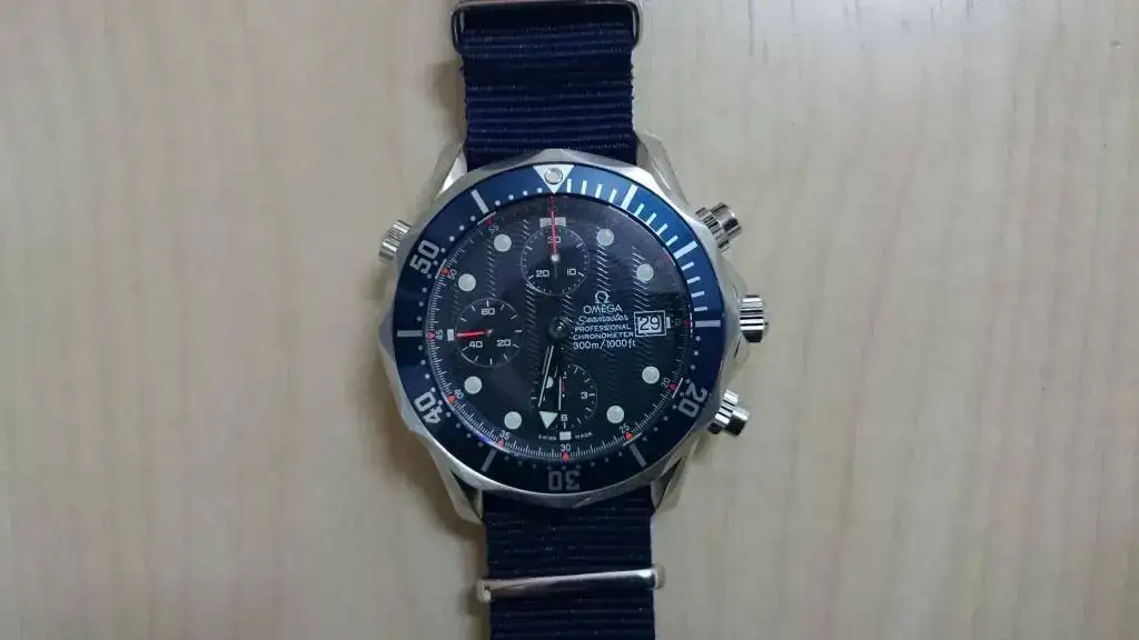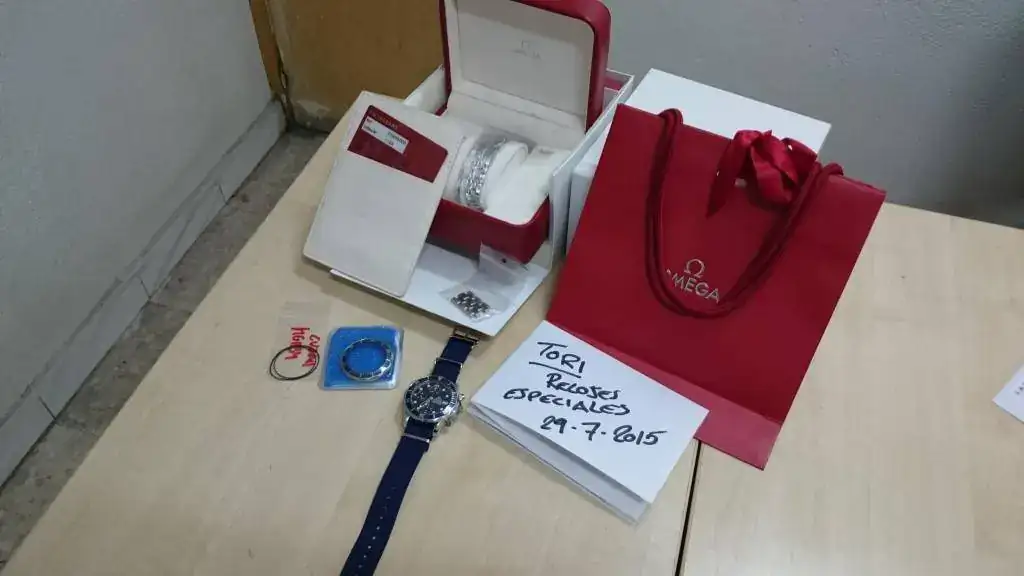El reloj esta en un estado magnifico , paso una revision completa hace menos de un año , incluso cambie el bisel por uno nuevo ( no estaba mal pero asi soy.... )se pulio , juntas , bisel etc....es decir 500€ para dejarlo como nuevo ( pensando en que pasaria conmigo el resto de su vida jejejeje ) esta completo ... o casi , no tenia documentacion , consegui la tarjeta de pictogramas en CO Omega , con su tarjetero , la caja roja y exterior de carton estan impolutas , tambien trae libro de instrucciones , se incluyen los eslabones sobrantes y tambien el bisel y juntas viejas , como digo de marcha va perfecto y esteticamente igual , el cierre del armis tiene alguna marca , nada importante . Lo vendo por falta de uso por lo que no atendere propuestas de cambio , el precio que le pongo es de 1600€ envio incluido a la peninsula , es decir lo que me gaste en el , no quiero ni mas ni menos , asique si eres de Madrid y decides acercarte a por el descontamos el envio o invito a unas cañas
